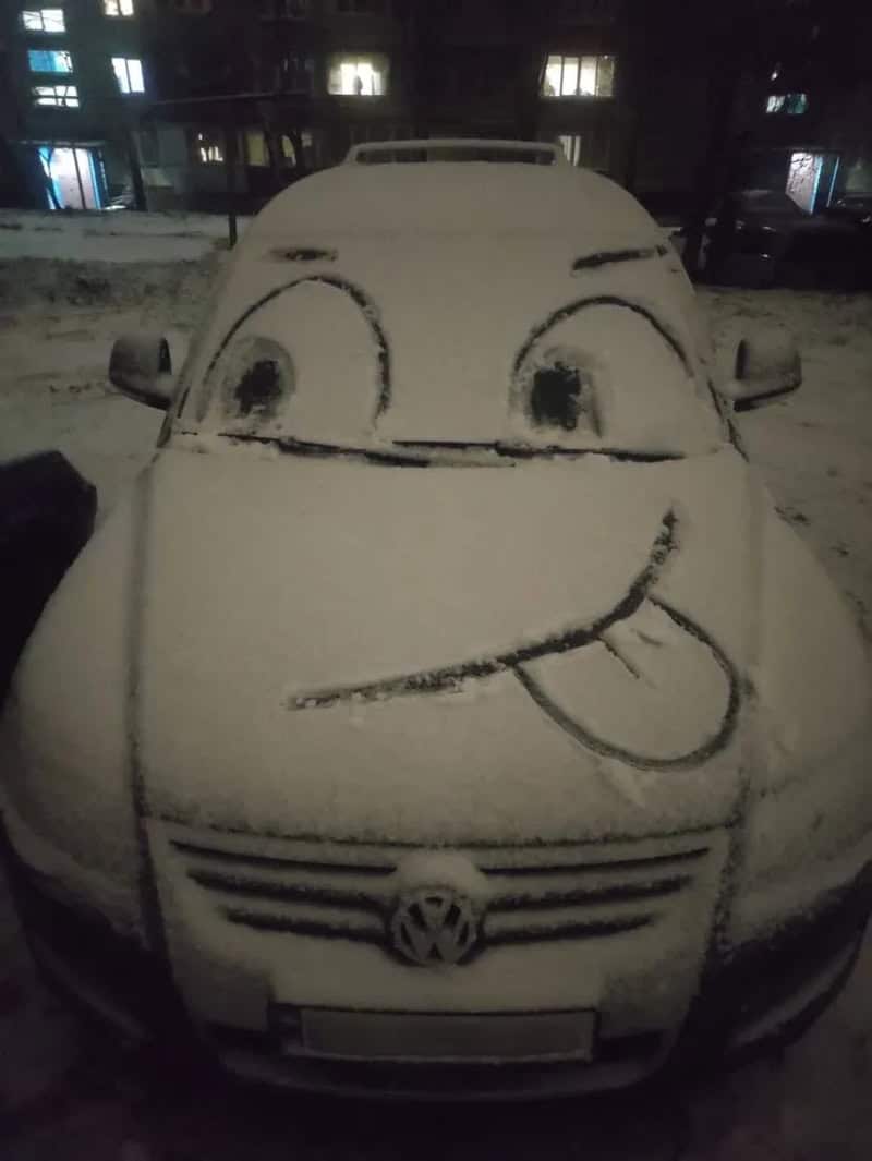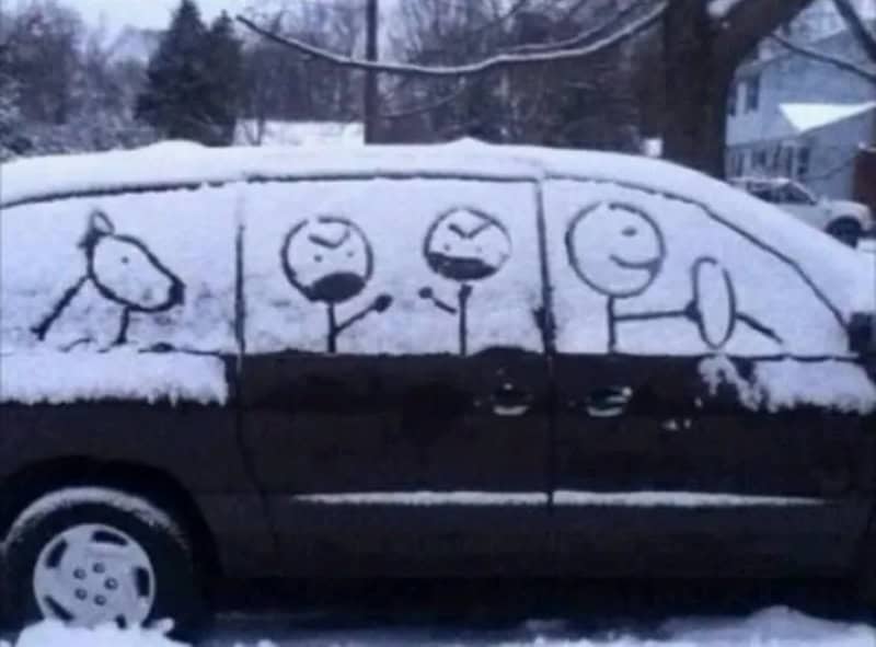 When I see snow on my car, I brush it off. Or if I’m in a hurry, I just drive and hope for the best. But others see snow-covered cars as a canvas of opportunity. They draw faces and create little art before cleaning them off. Sometimes the snow creates funny patterns on its own, no drawing required. And if it’s not their car, it’s a nice reminder that you’re never too old to play in the snow.