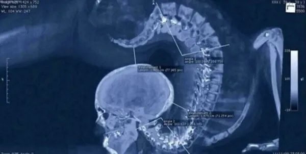 15. A gymnast shows off their insane flexibility in an X-ray.