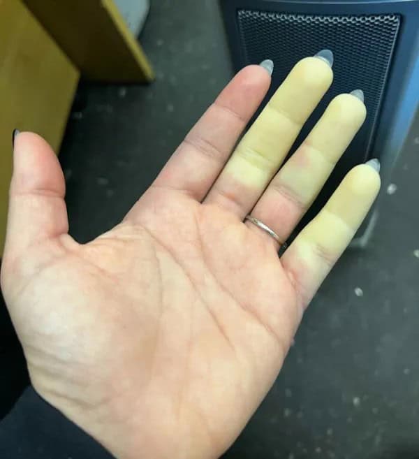 20. “Raynaud’s syndrome (Phenomenon) On my hand this morning.”
