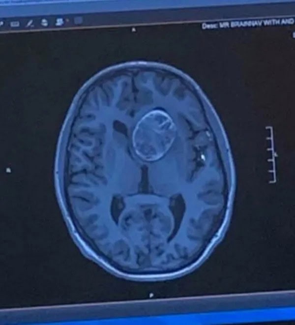 5. Scan of my Brain and the 6.2 CM dermoid cyst I had surgically removed. My Brain somehow managed to grow around it without causing me to become mentally or physically disabled for 22 years.