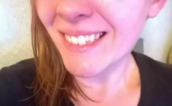 7. She has a permanent baby tooth.