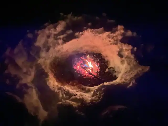 40. A distant galaxy? No, just my campfire in the snow.