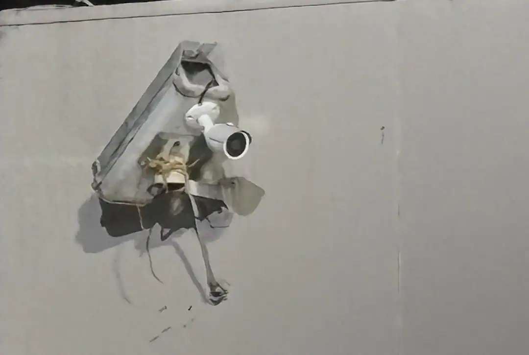 7. “A newer security camera mounted on shell of an older security camera.”