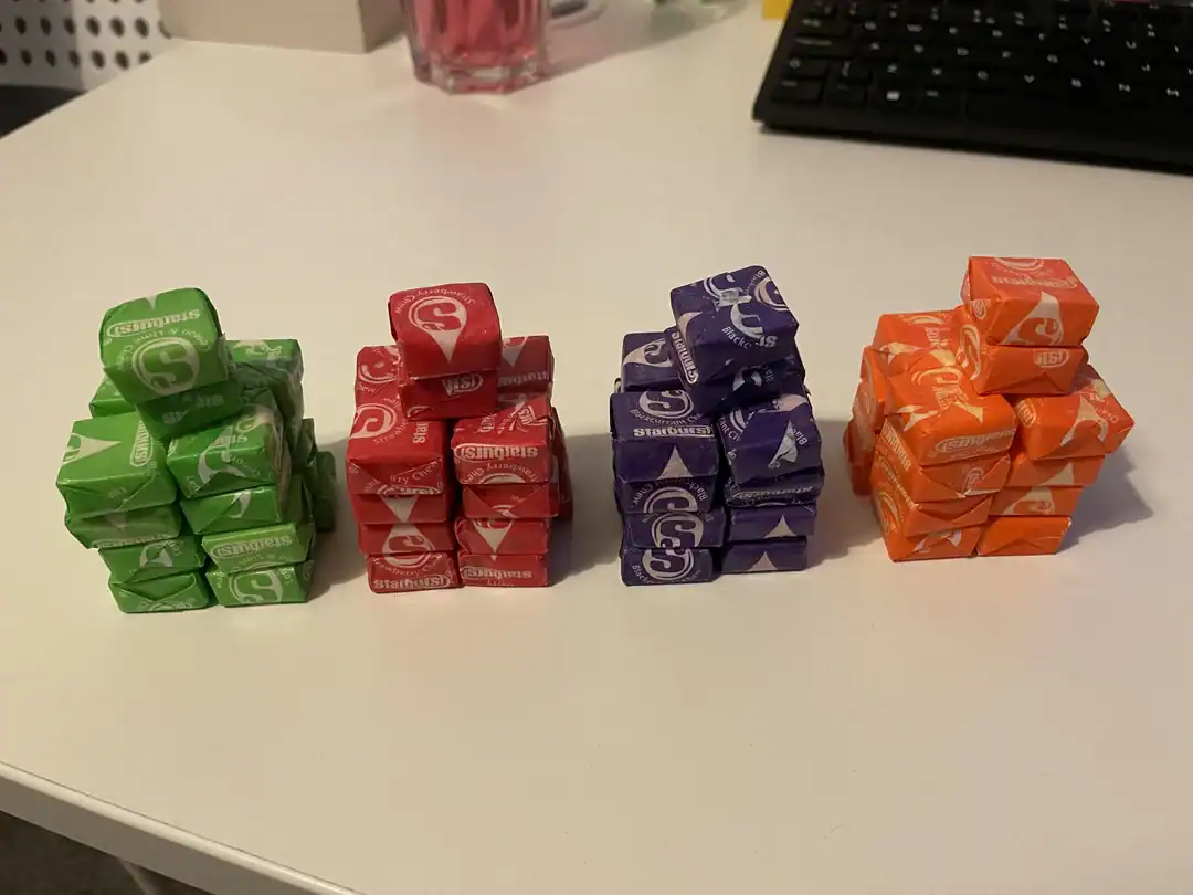 21. “My sharing bag of starburst had equal amounts of each flavour in it”