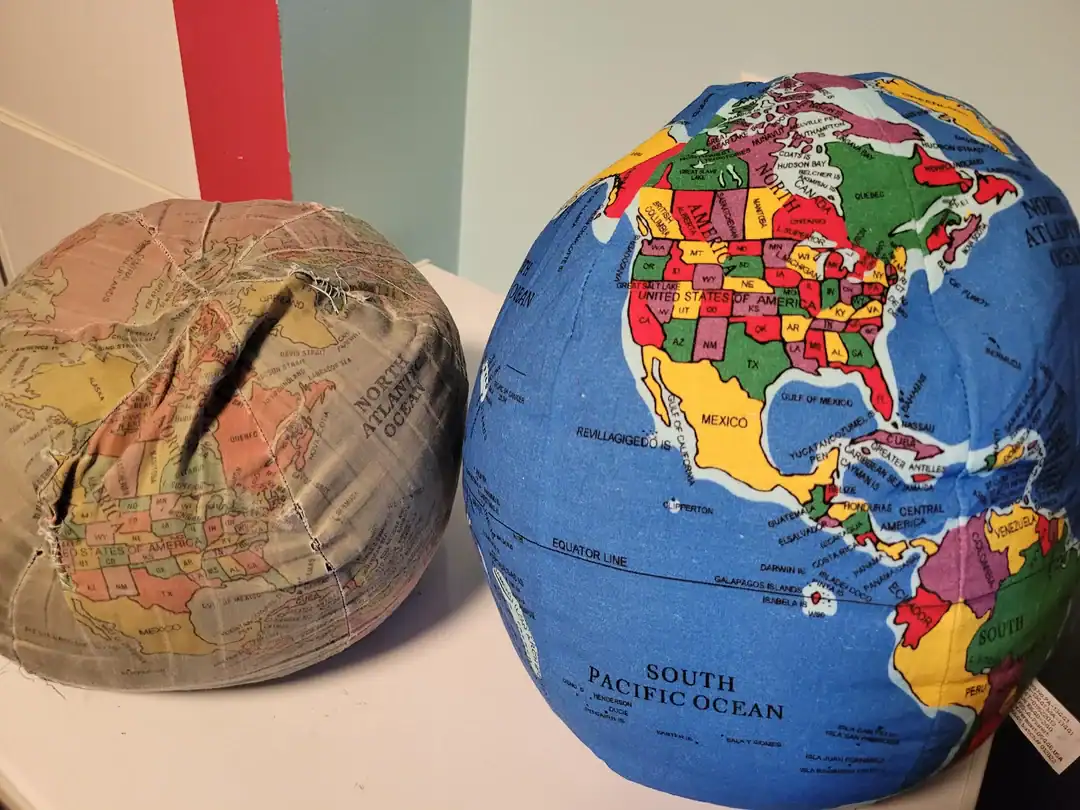 29. “Same stuffed globe ~35 years apart”