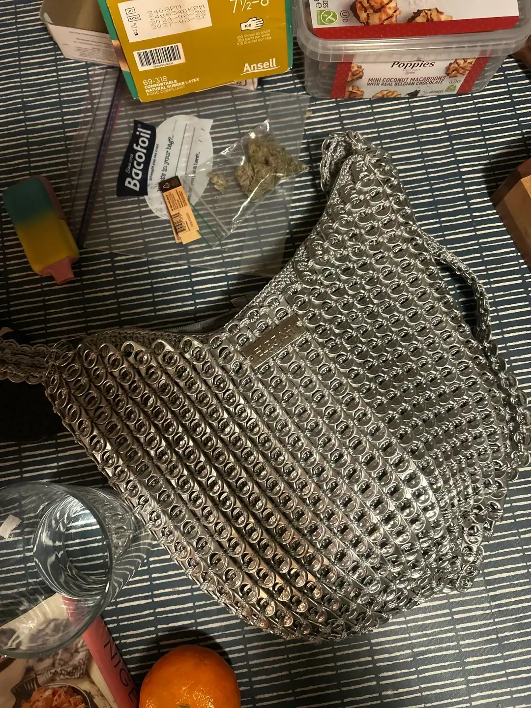 24. “This bag is handmade with beer can pull tabs.”