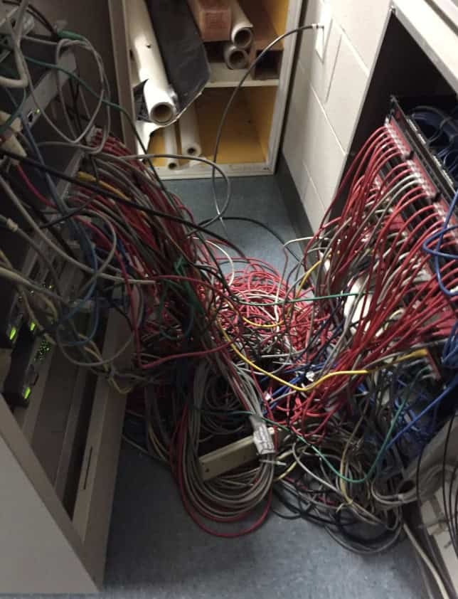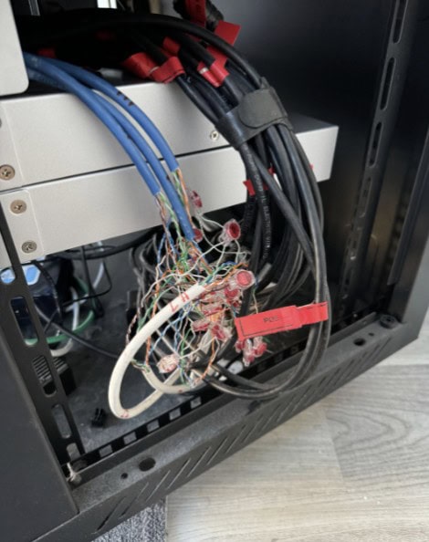 22. There’s so many things wrong here, but the damaged cable jackets take the cake.