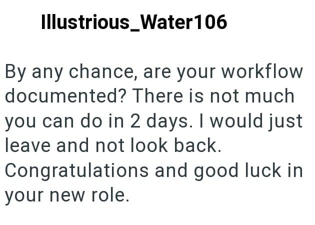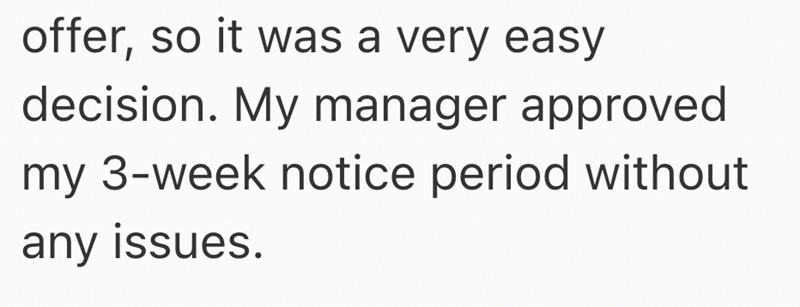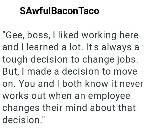 The thing is, he’s already found a much better job and plans to stat there at the end of the 2 weeks.