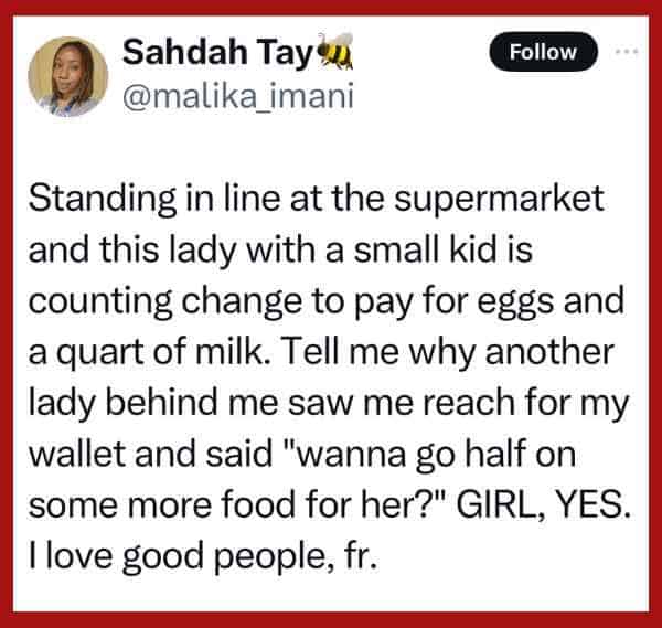 Sometimes you just need to read a wholesome tweet (real or not, but I want to believe it’s real) about stranger being inexplicably kind to remind yourself that humanity might actually be worth the effort after all.