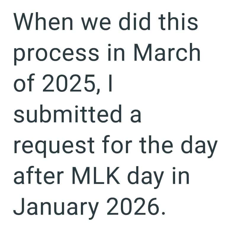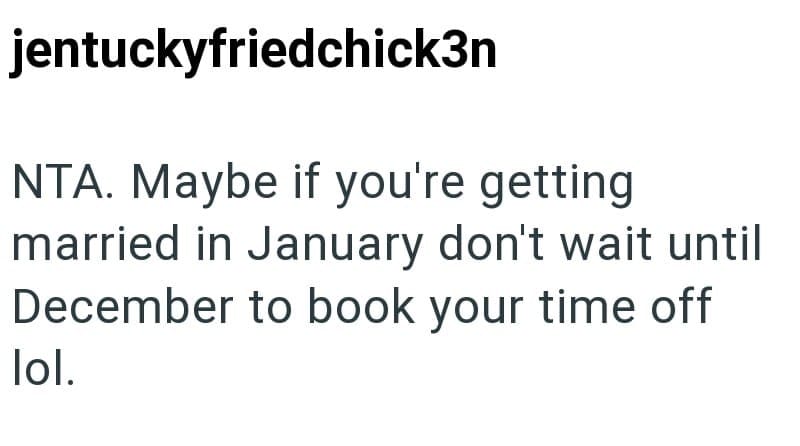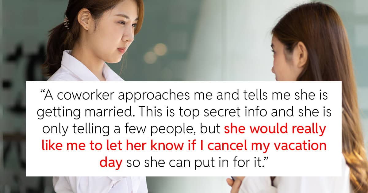In this Reddit post, one entitled employee tries to pressure her coworker into giving up her vacation day for her wedding, even though they aren’t even friends.