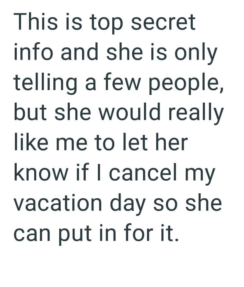Entitled Employee Tries To Guilt Coworker Into Giving Up Her Vacation Day For Her Wedding