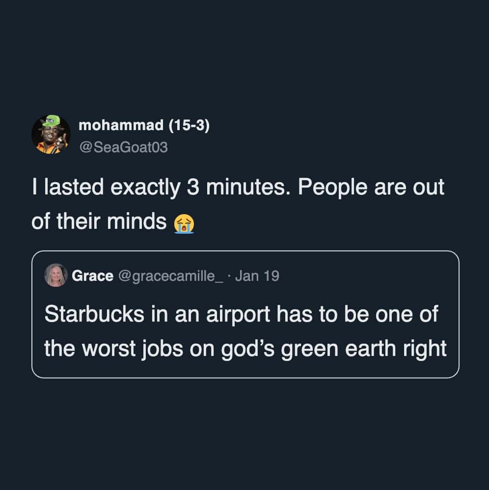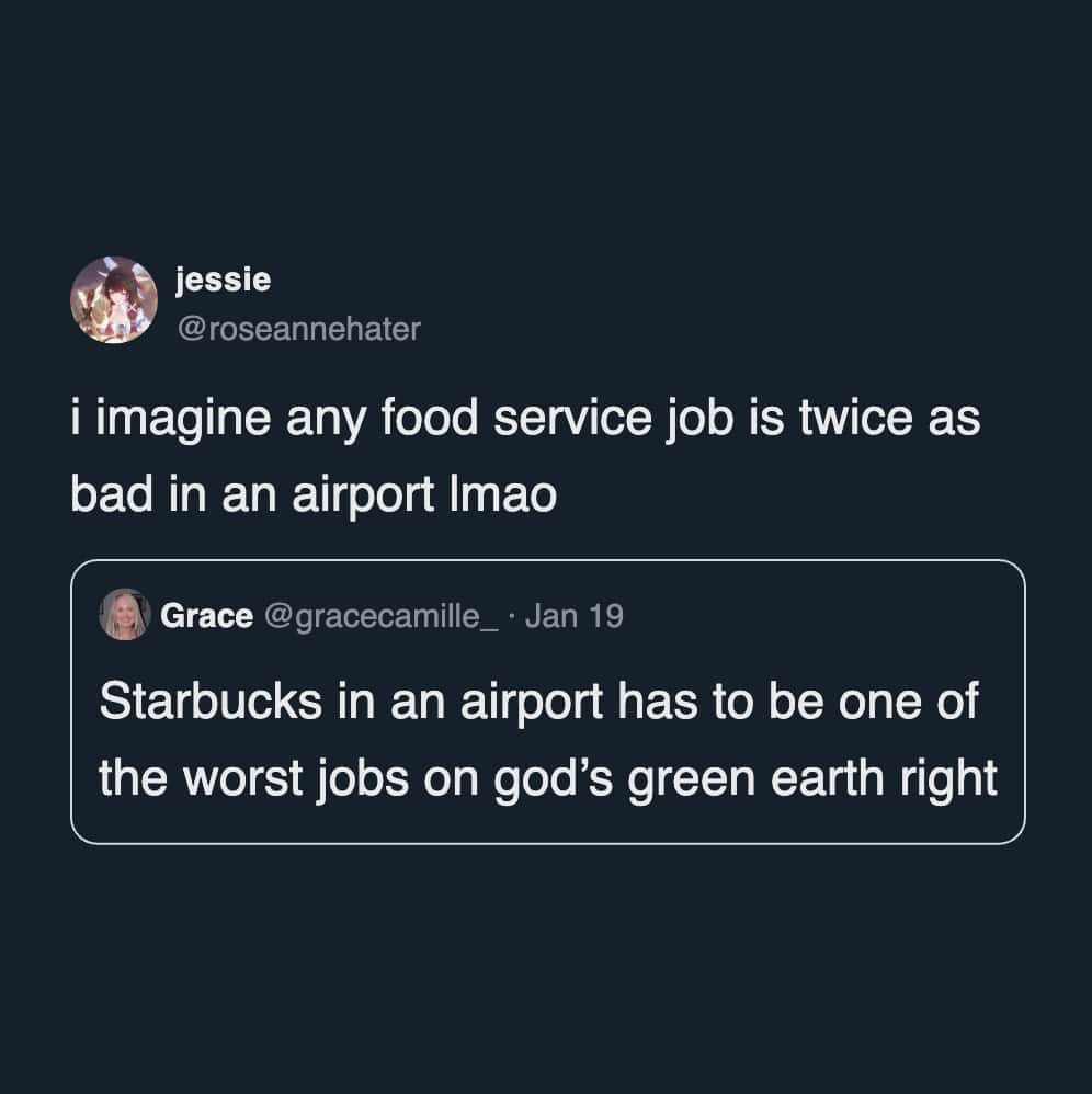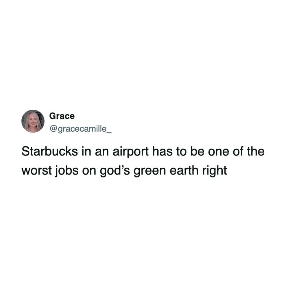 Airport Starbucks seems convenient until you think about who works there. Pre-dawn shifts, endless mobile orders, and travelers in a hurry. Everyone needs coffee immediately, and the baristas deal with all of it at once. As one person said, it’s the boss level of customer service.
