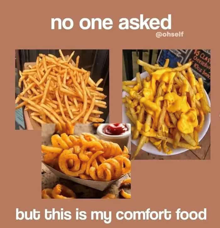 I guess there could be worse things to be overdoing it on. For now, I’ll just enjoy these comfort food memes and try to laugh away some of the calories.