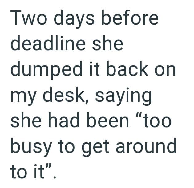 Entitled Employee Dubbed ‘Lazy Susan’ Claims She’s Too Busy To Finish Assignments, Coworker Proves She’s Lying And Gets Her Fired