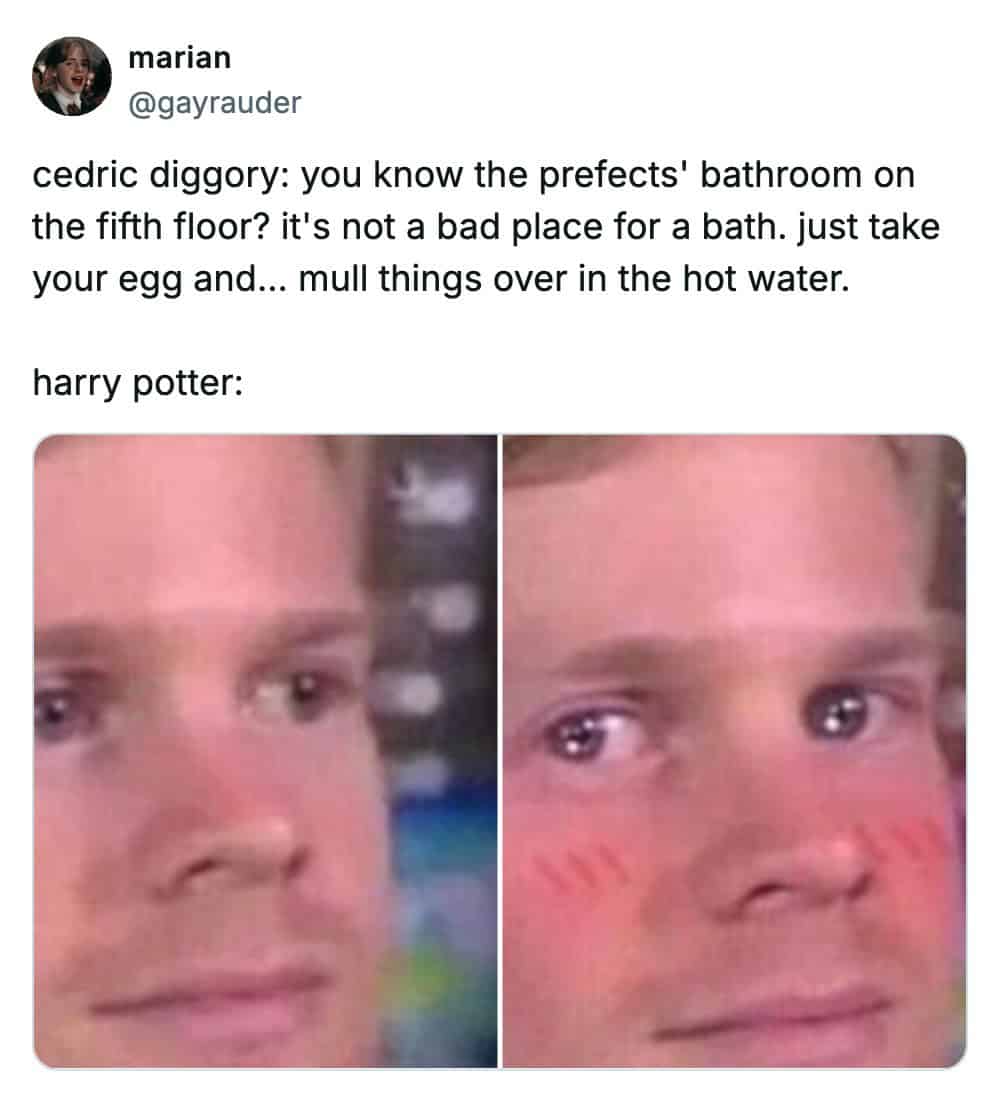 That’s why Harry Potter memes always hit for me. They take moments I know by heart and twist them into jokes about real life, bad decisions, and the general chaos of being human.