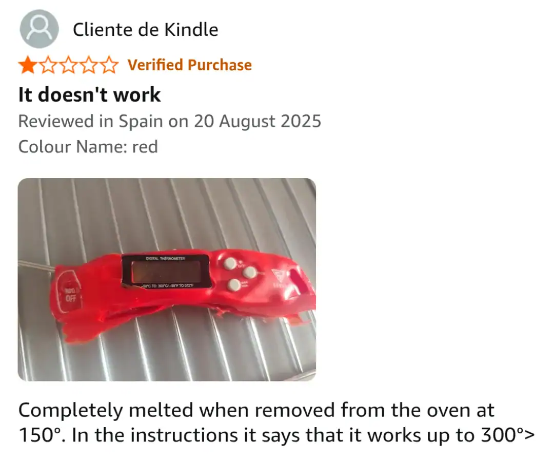 2. “An Amazon review for a food thermometer”