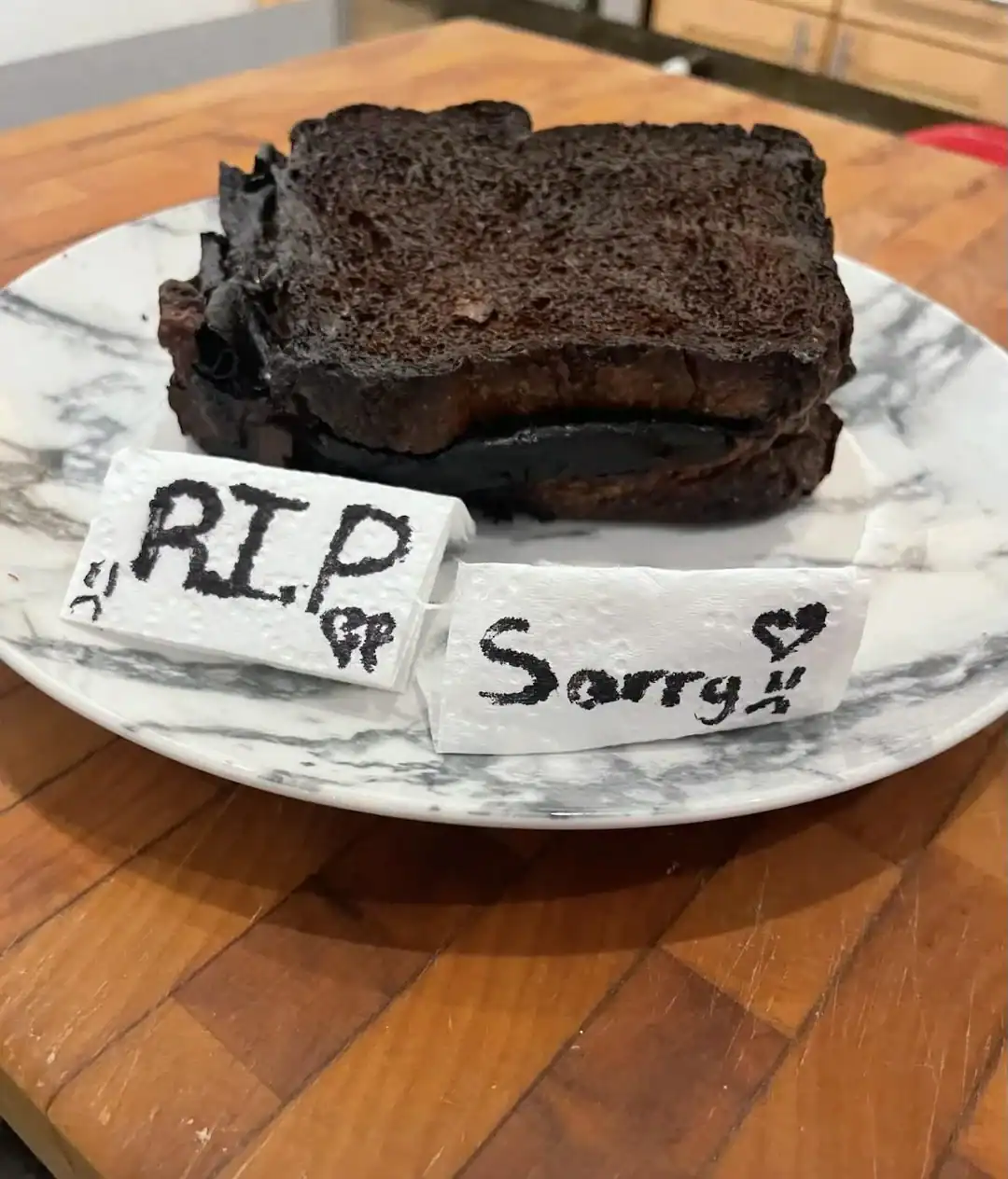23. “Told her three times not to forget the sandwich in the air fryer.”