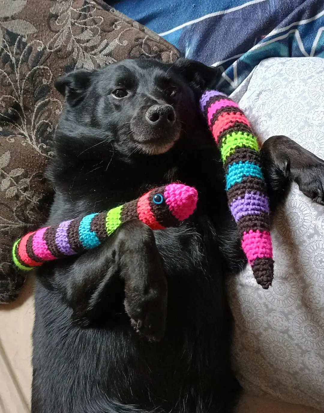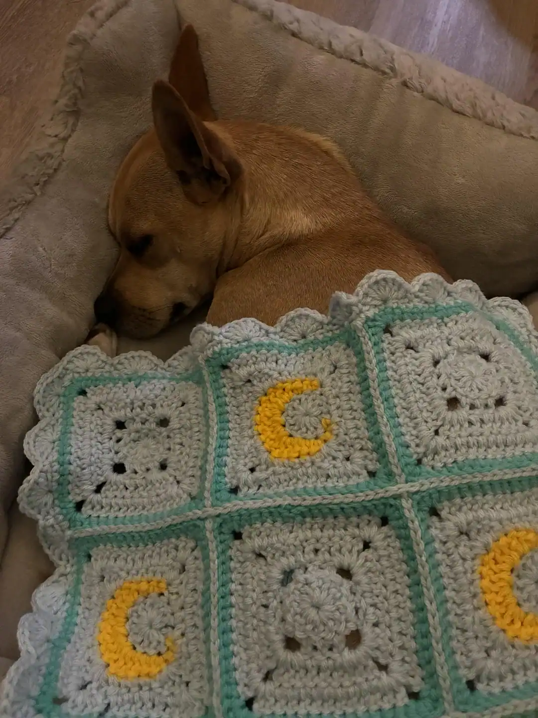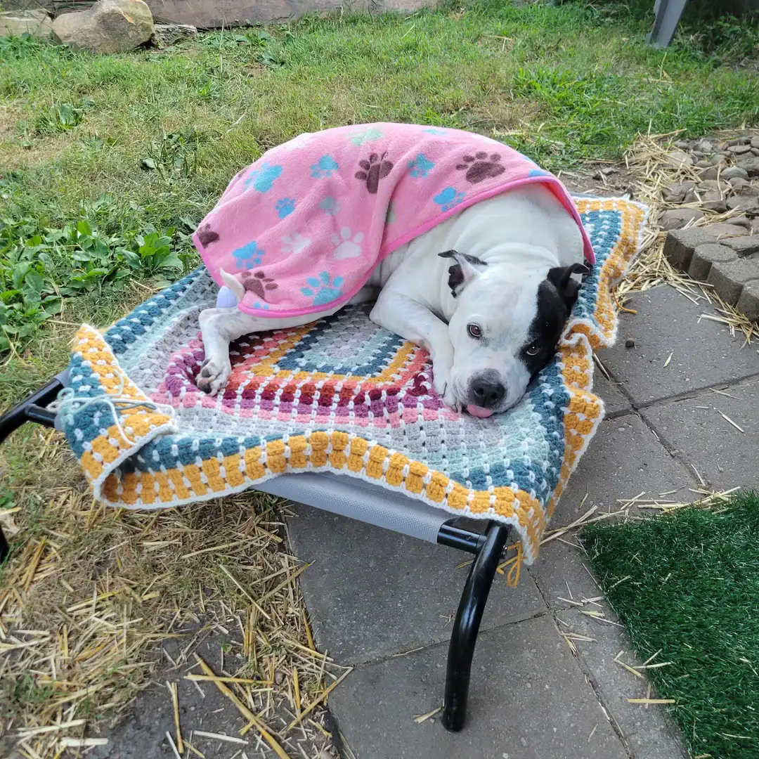 30. “My dog enjoying the blanket that I made for him!”