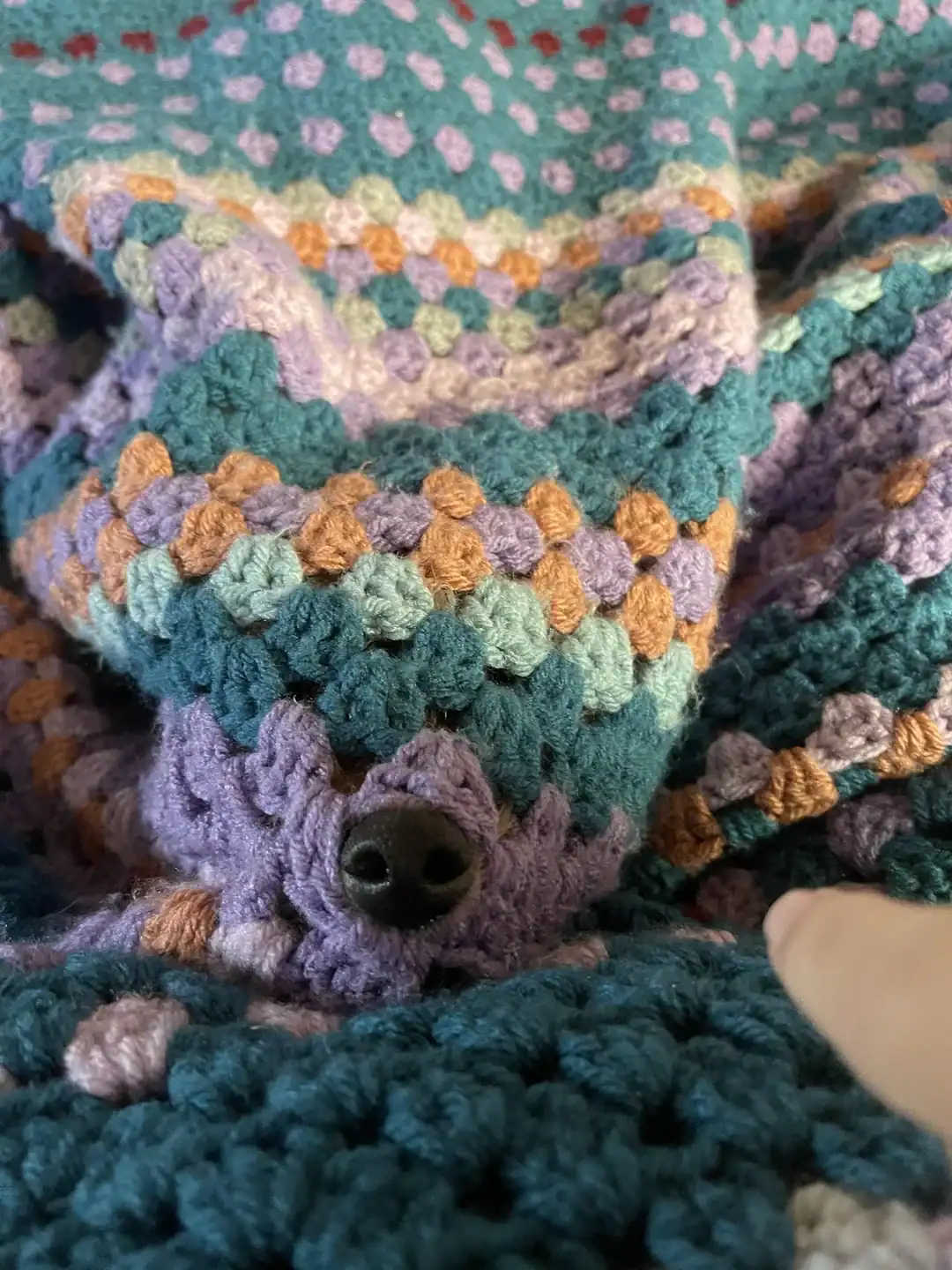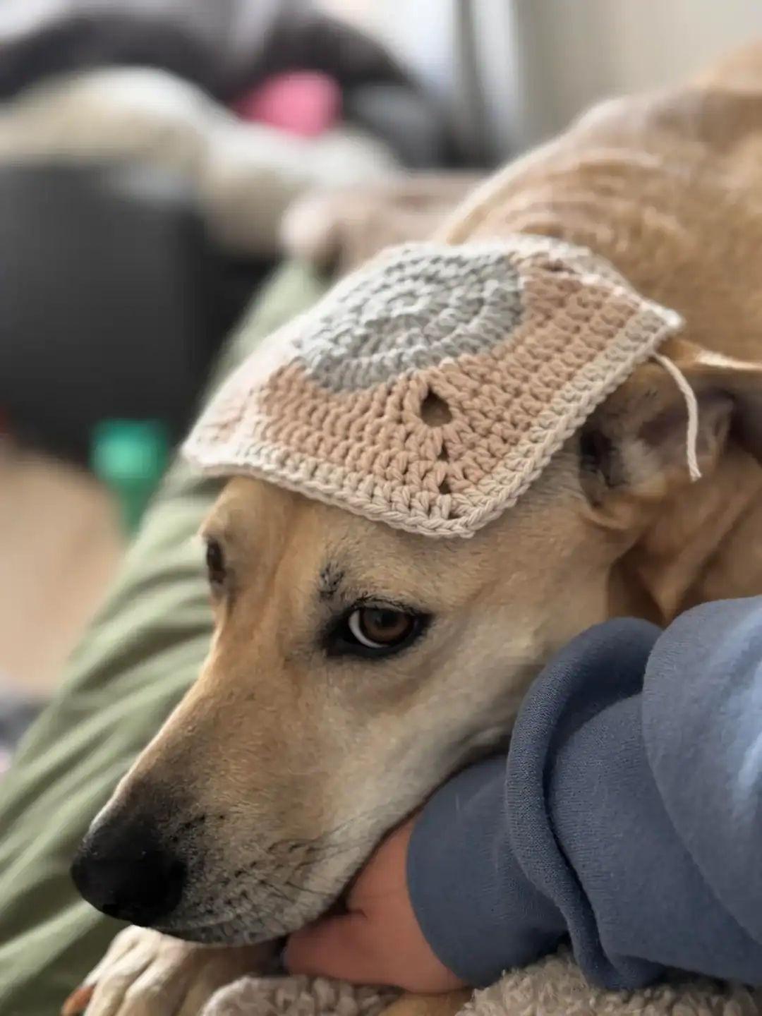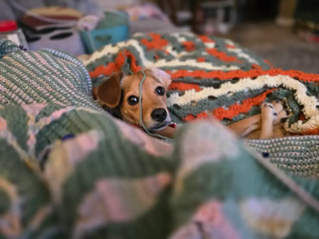 30. “My dog enjoying the blanket that I made for him!”