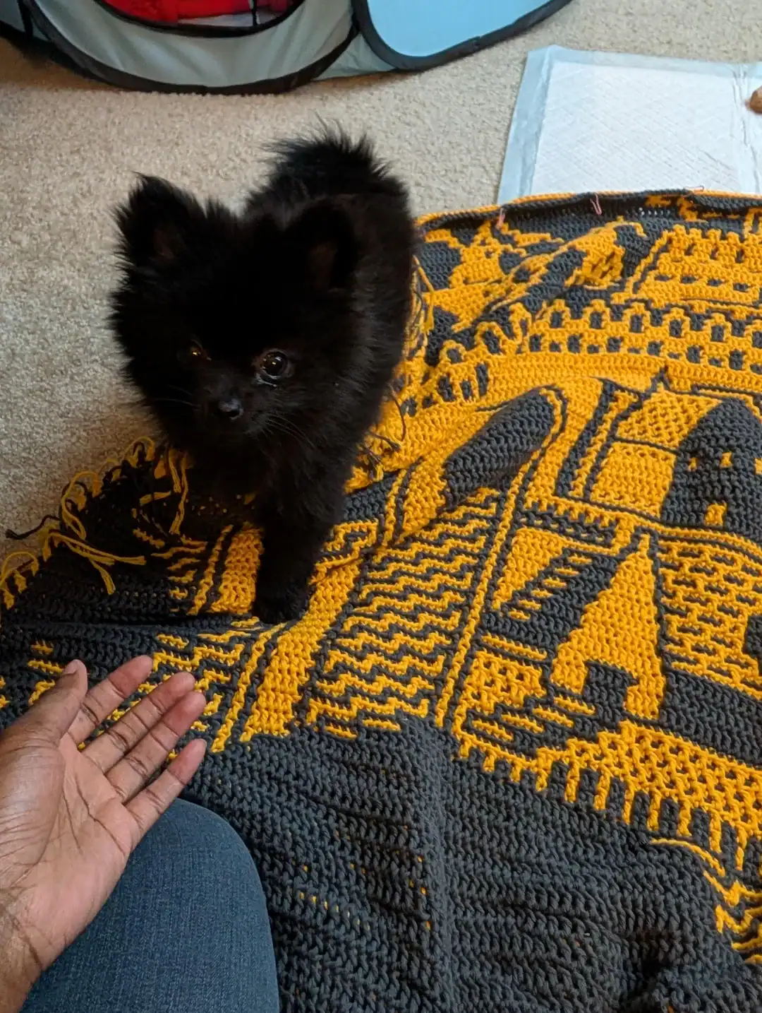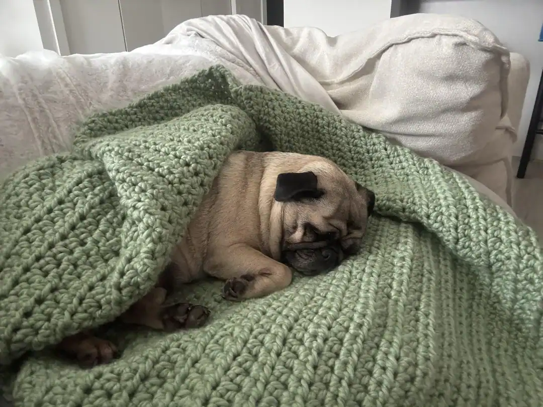 18. “Started crocheting a week ago. My pug is enjoying my finished project”