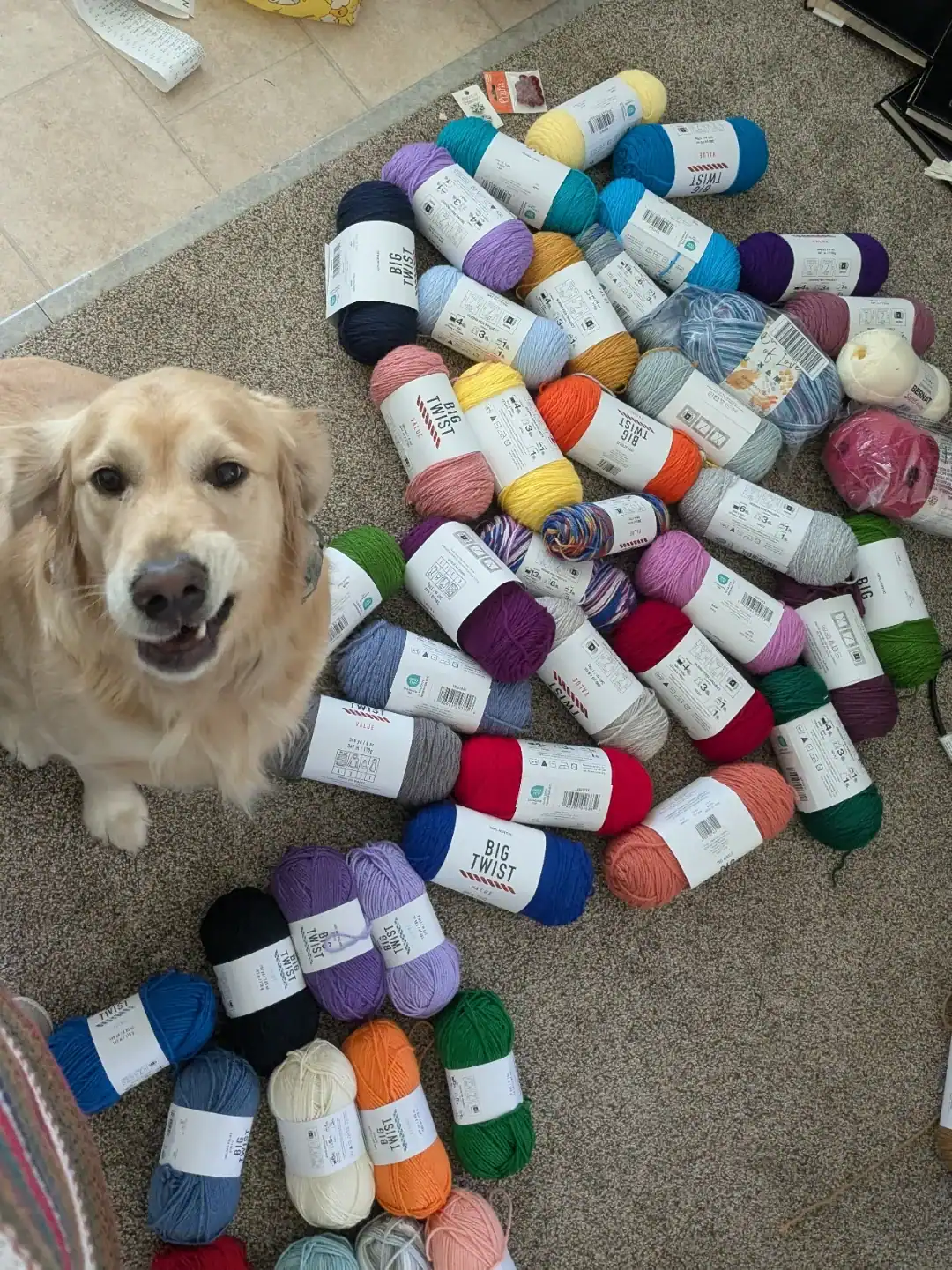 2. “I was told you’d appreciate my dog judging my final yarn haul from Joann.”