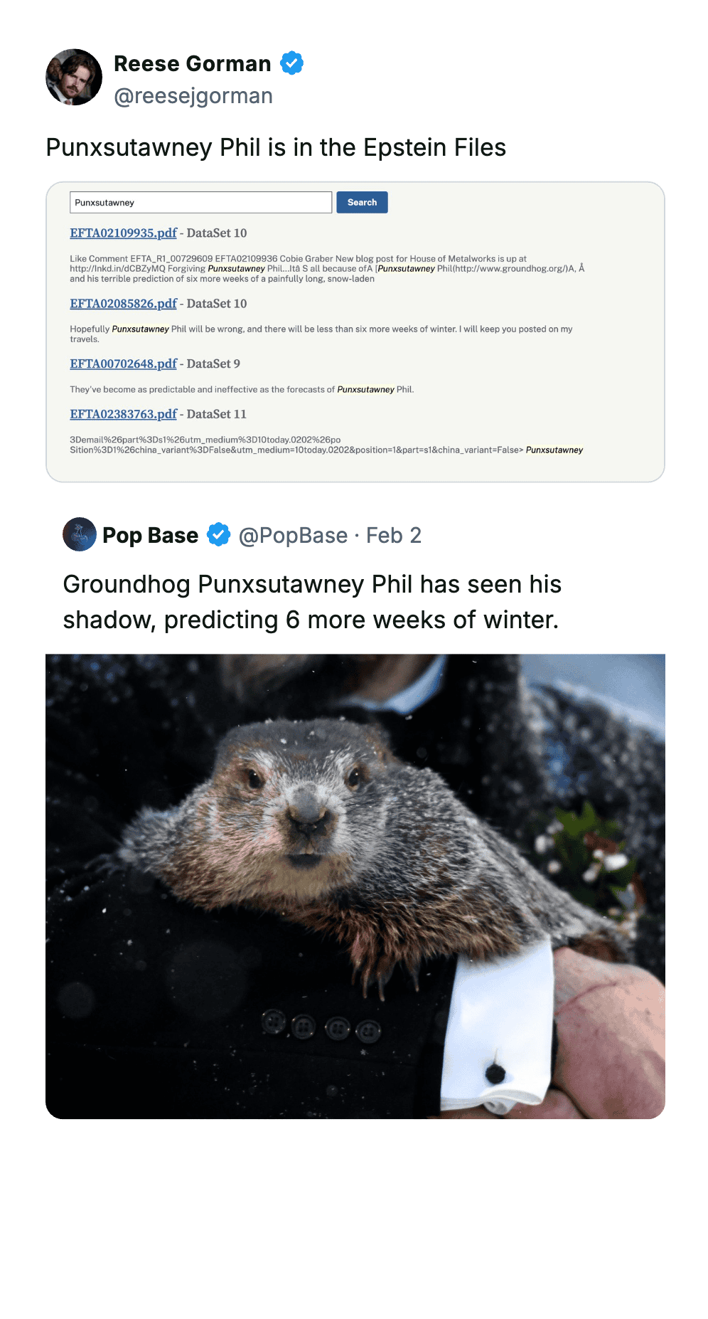 Sadly, on February 2, 2026, Punxsutawney Phil did in fact see his shadow, so 6 more weeks of winter. But at least you can have a few laughs about it first?