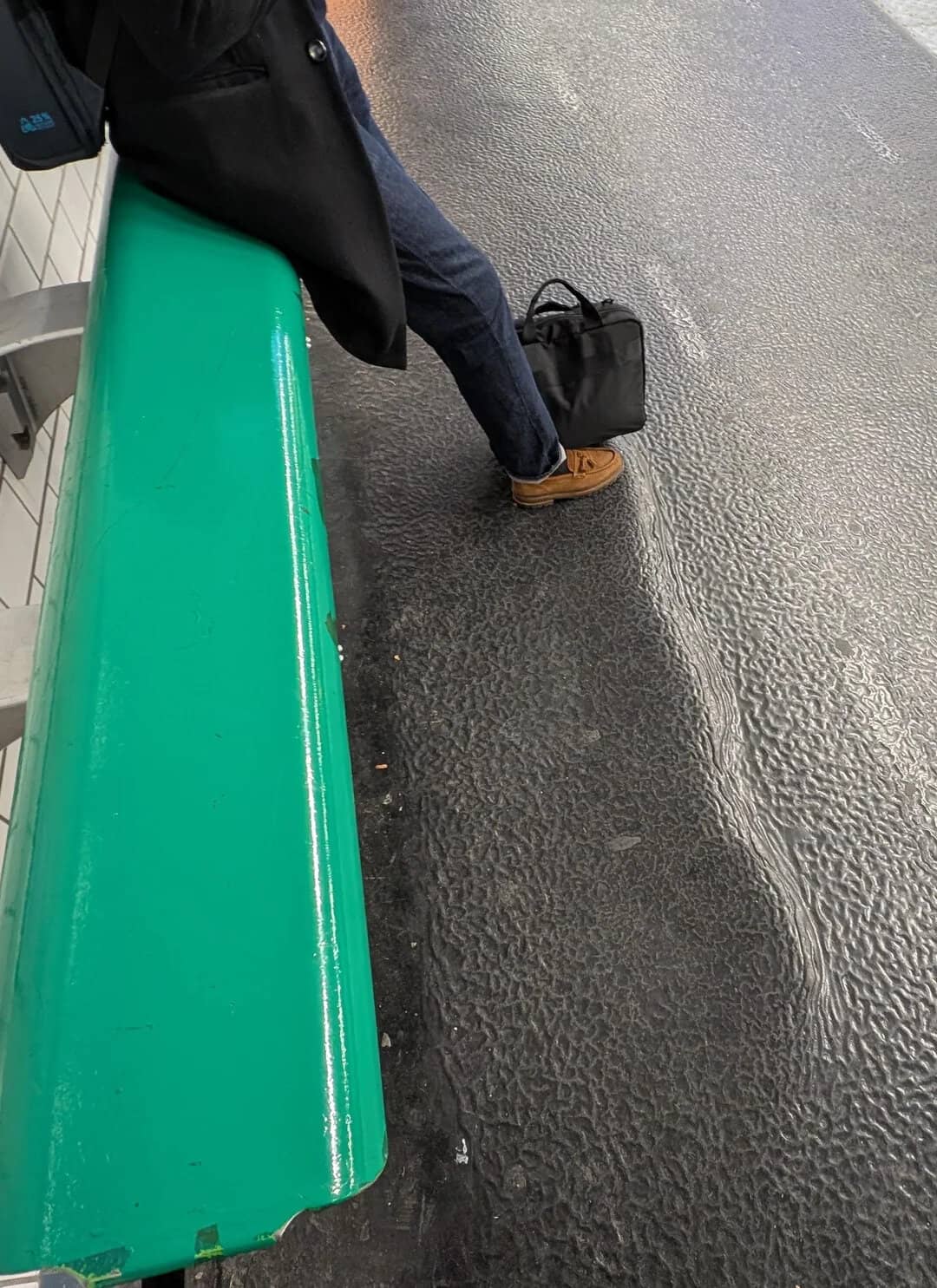 14. “People pushing the flooring away from these leaning seats in the Parisian metro”