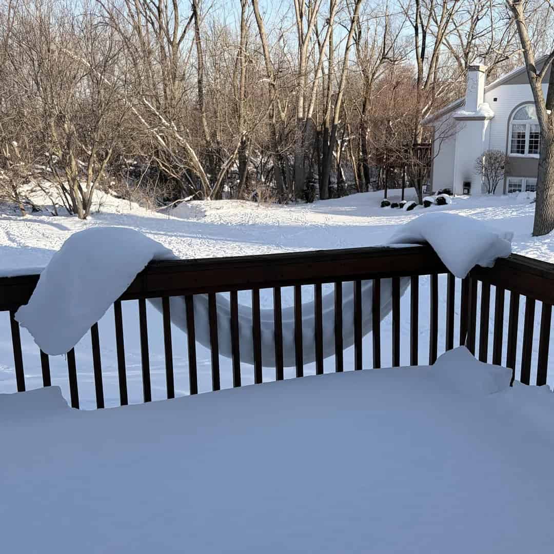 2. “Snow naturally formed this garland situation on my parents deck. It’s holding that shape on its own.”