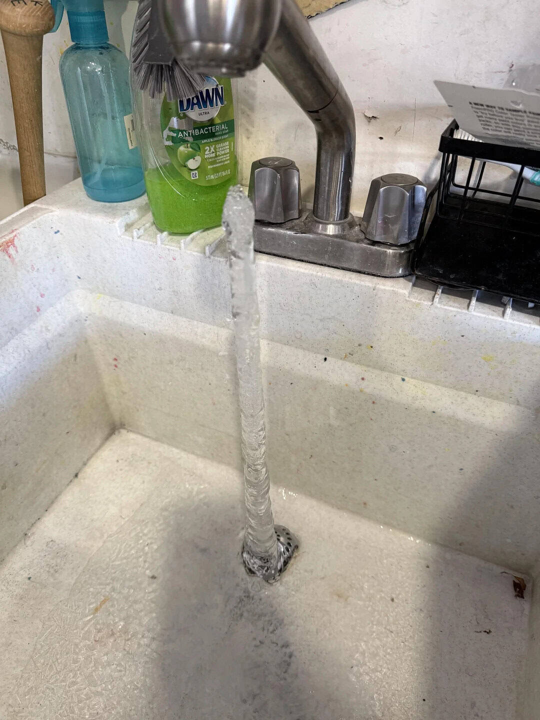 8. “Had my water on a super slow drip in my garage and over a day or two this icicle formed.”
