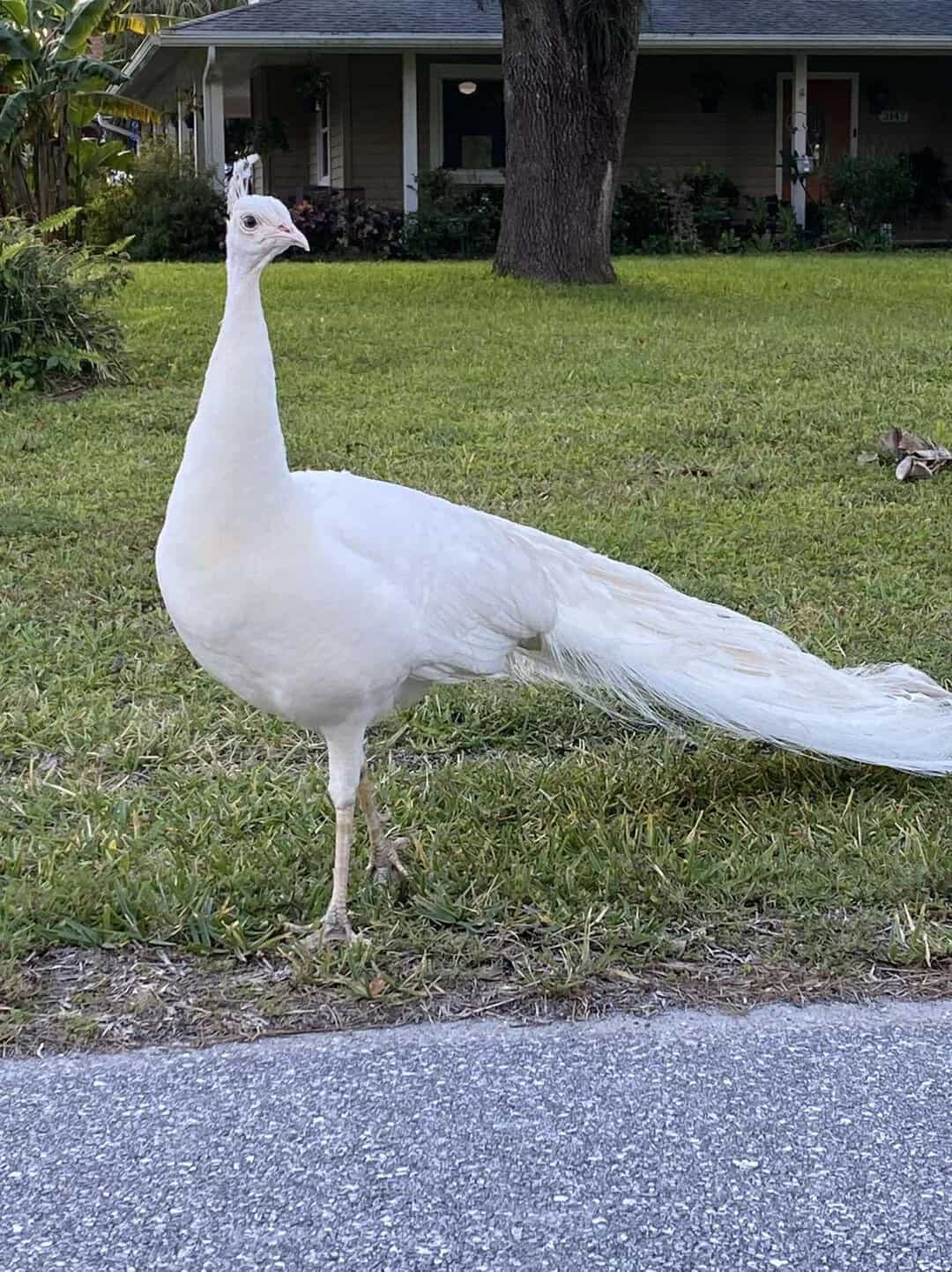 27. “This entirely white peacock in my mom’s neighborhood”