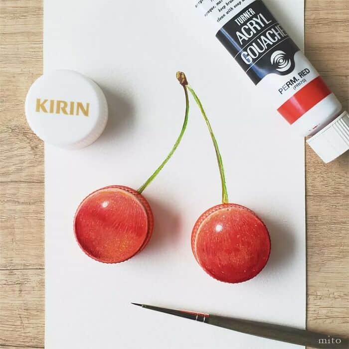 35 Mini Food Paintings On Plastic Bottle Caps By This Talented Artist