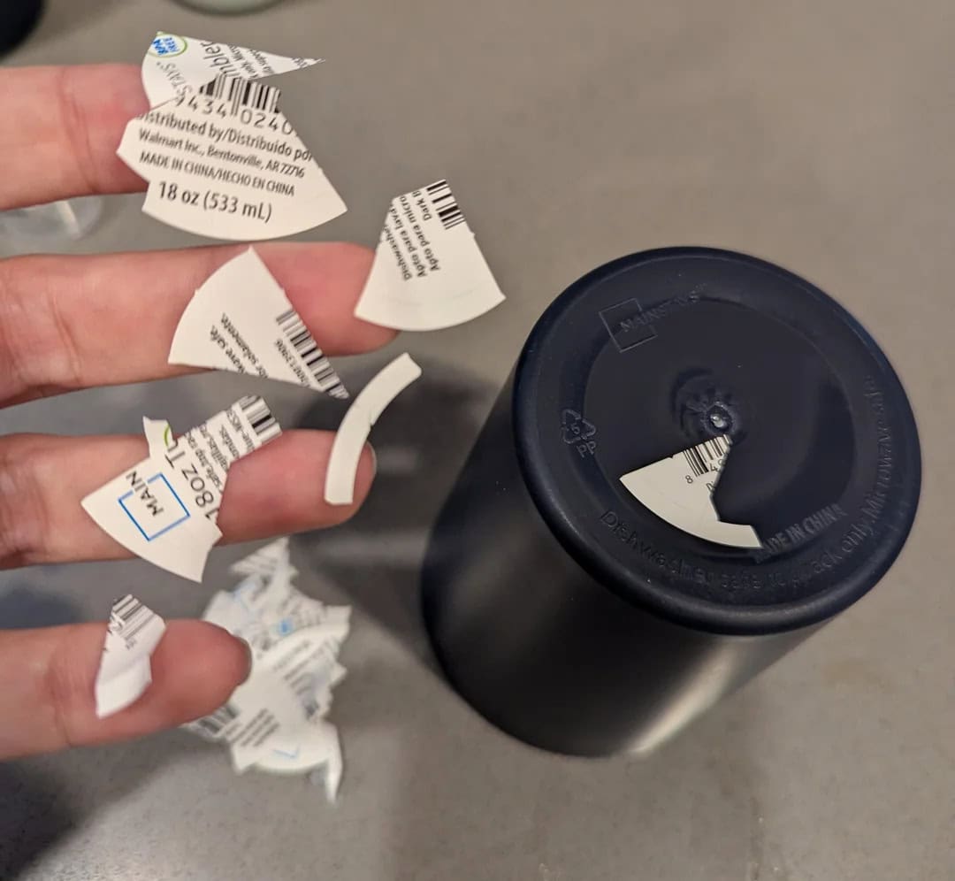 “Thought I’d peel the stickers off and wash these real quick. Turns out each sticker is cut into 16 different pieces to fit nicely on the curved bottom. Took entirely too long to peel these off.”