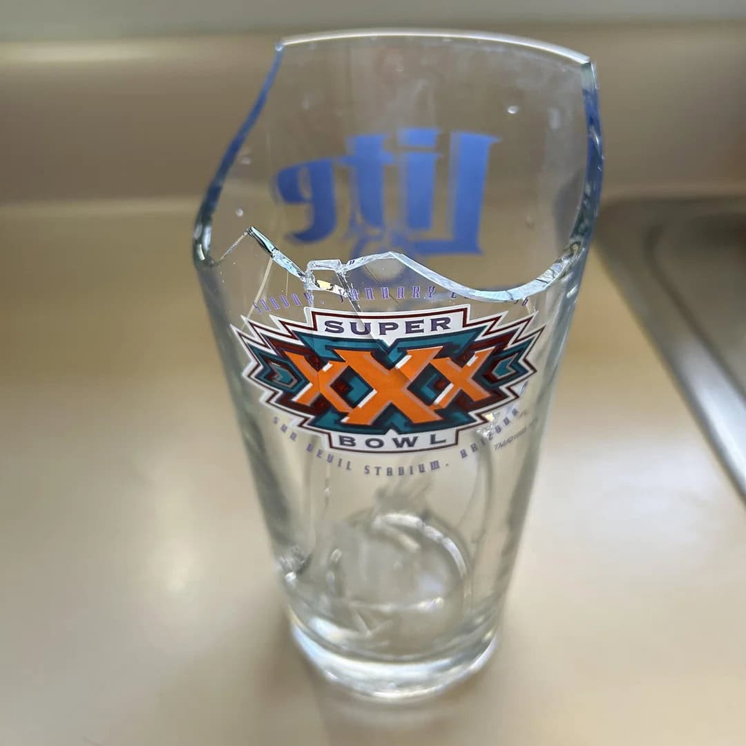 26. “My brother broke my favorite 30 year old glass from the Super Bowl in 1996”