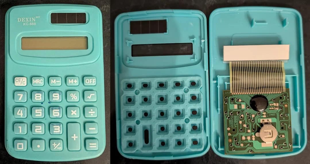 6. “Planned obsolescence even in cheapest devices: the calculator has a dummy photovoltaic cell and a real battery to make it d*e eventually.”
