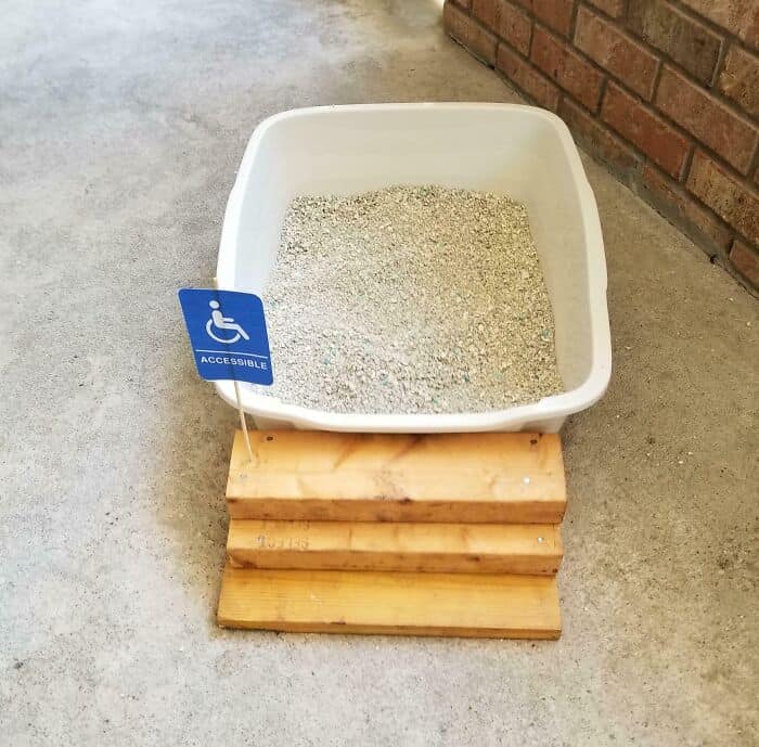 3. My Parents’ Cat Got Hurt, So My Dad Made Him Some Steps For His Litter Box