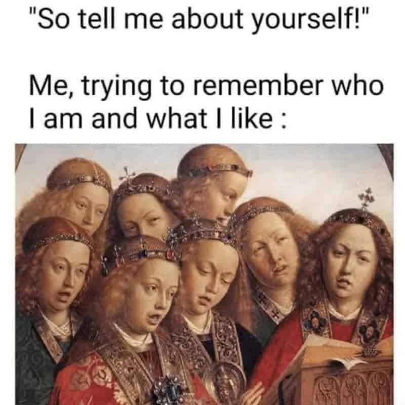 This week’s batch includes relatable memes about work stress, social anxiety, existential dread, all illustrated with art from centuries ago. Timeless relatability in meme form.