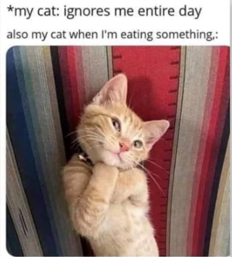 These funny cat memes capture hungry cat energy perfectly. The constant demands, the dramatic starvation act, the refusal to acknowledge that yes, there is literally food in the bowl right now.