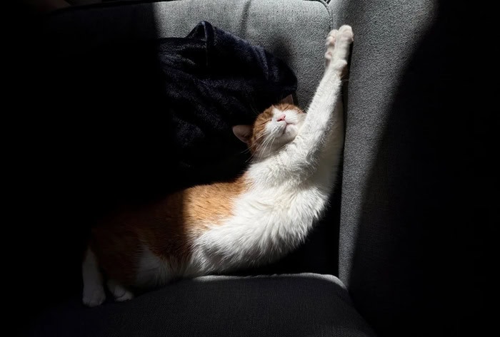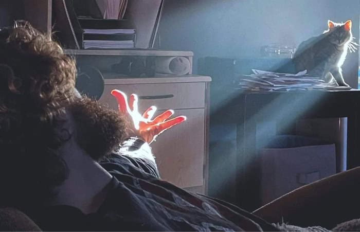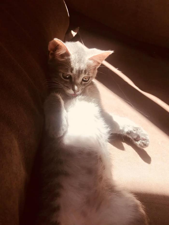 1. “Cat bathed in light”
