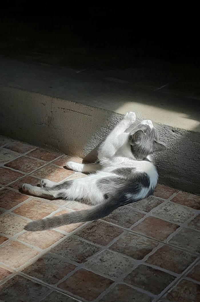 32. “Cat bathing in sunlight”
