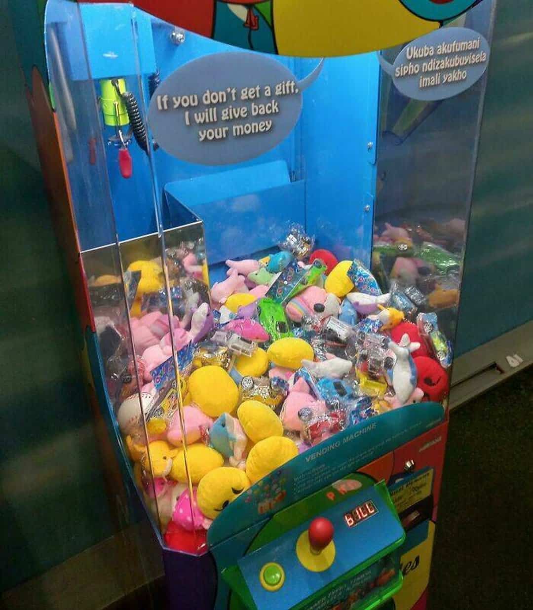 8. “This Claw Machine At A Restaurant Kids Play Area Gives You Your Money Back If You Don’t Receive An Item”
