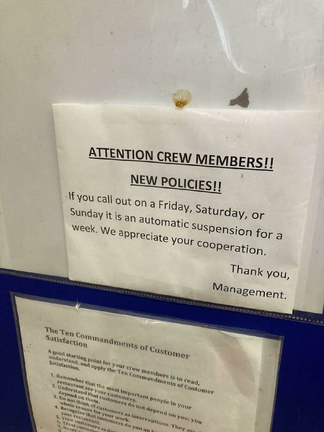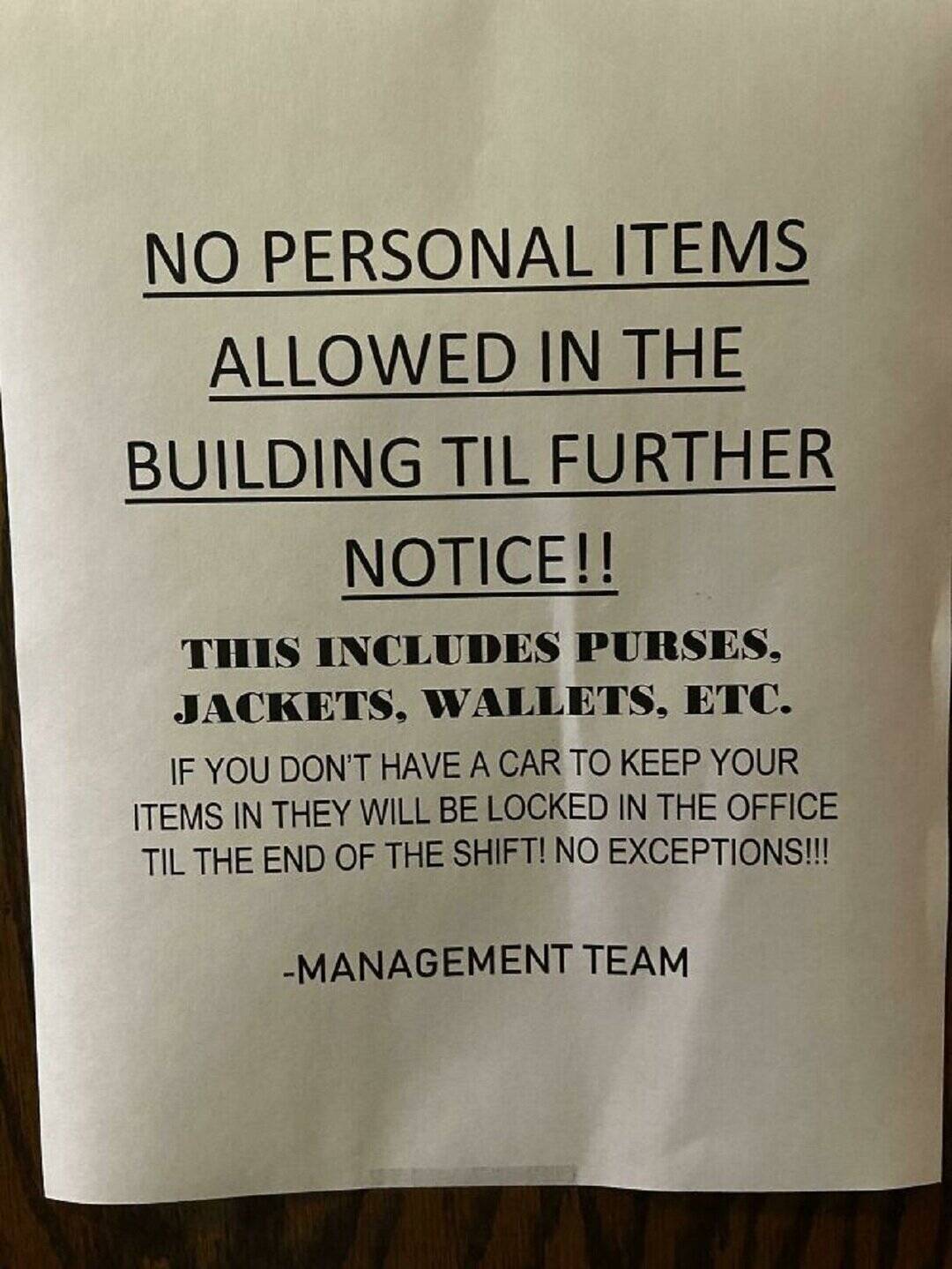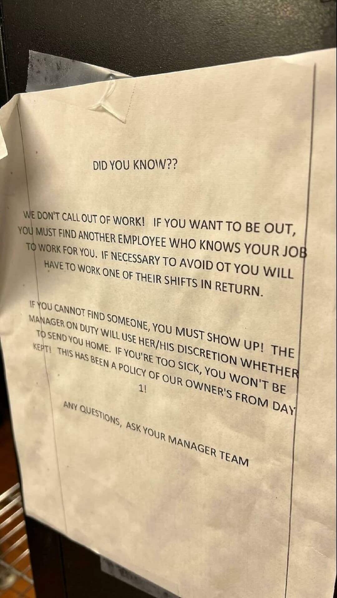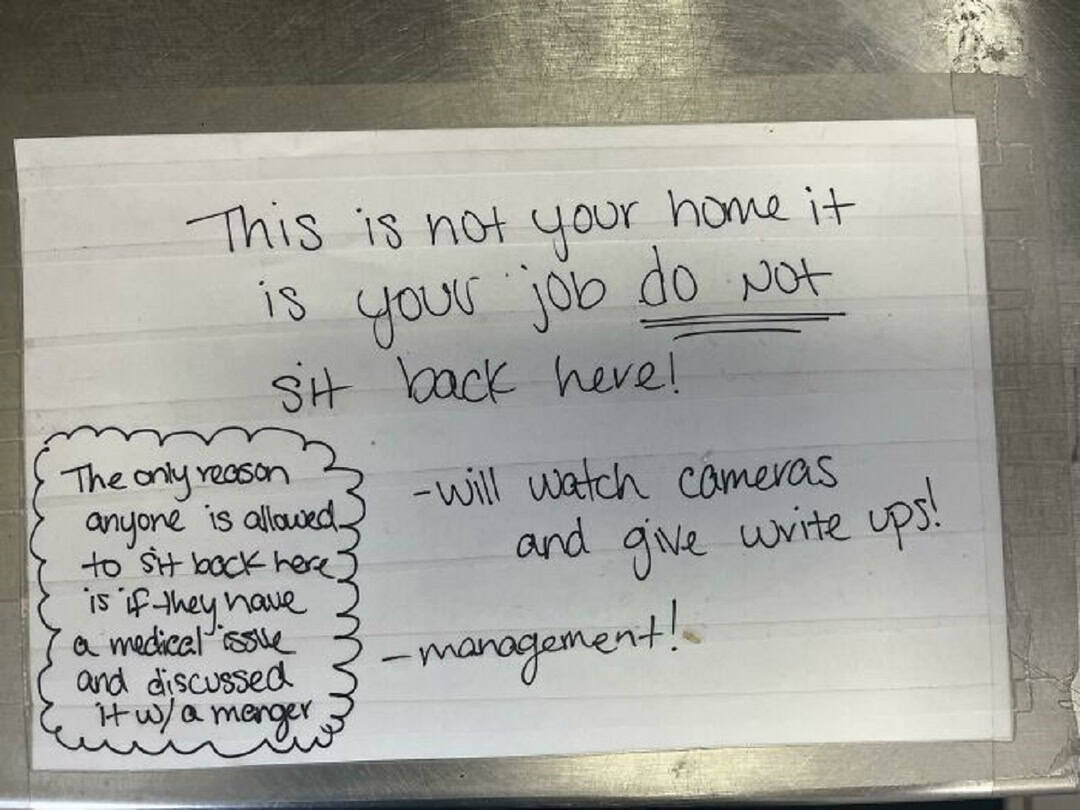 20. “Is This Even Legal? Stopped At A Restaurant For Lunch And Saw This Sign In The Employee Area”
