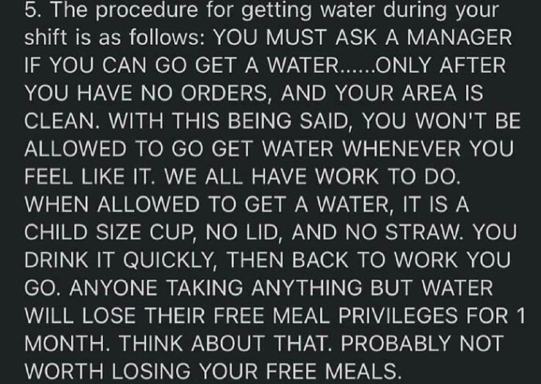 12. “How My Workplace (Fast-Food) Feels About It’s Employees Staying Hydrated”