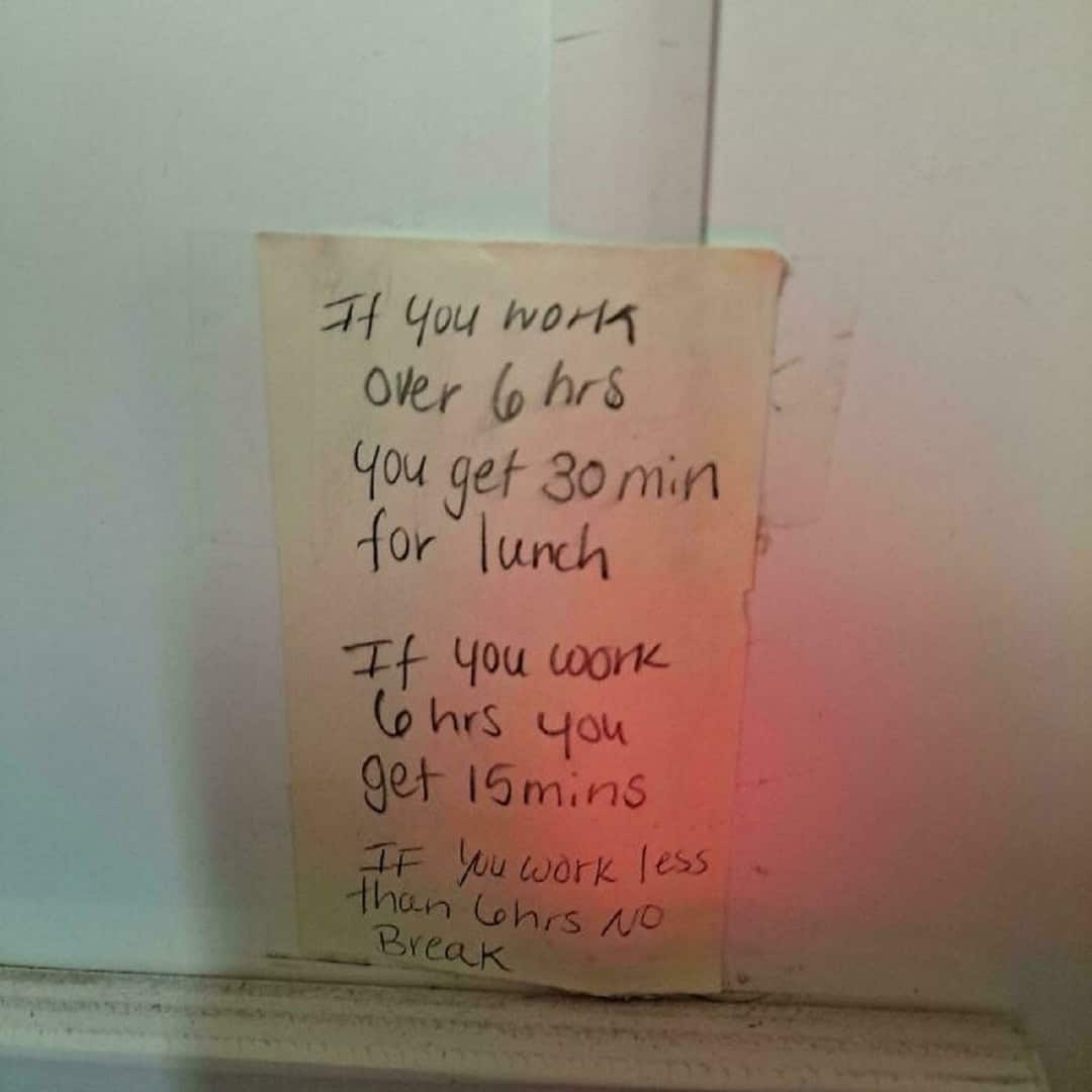 16. “My Job Has Been Lying About The Break Rules For The Year And A Half I’ve Been Here”