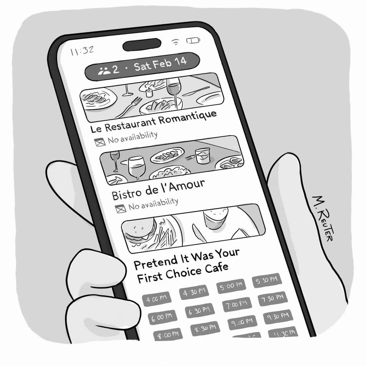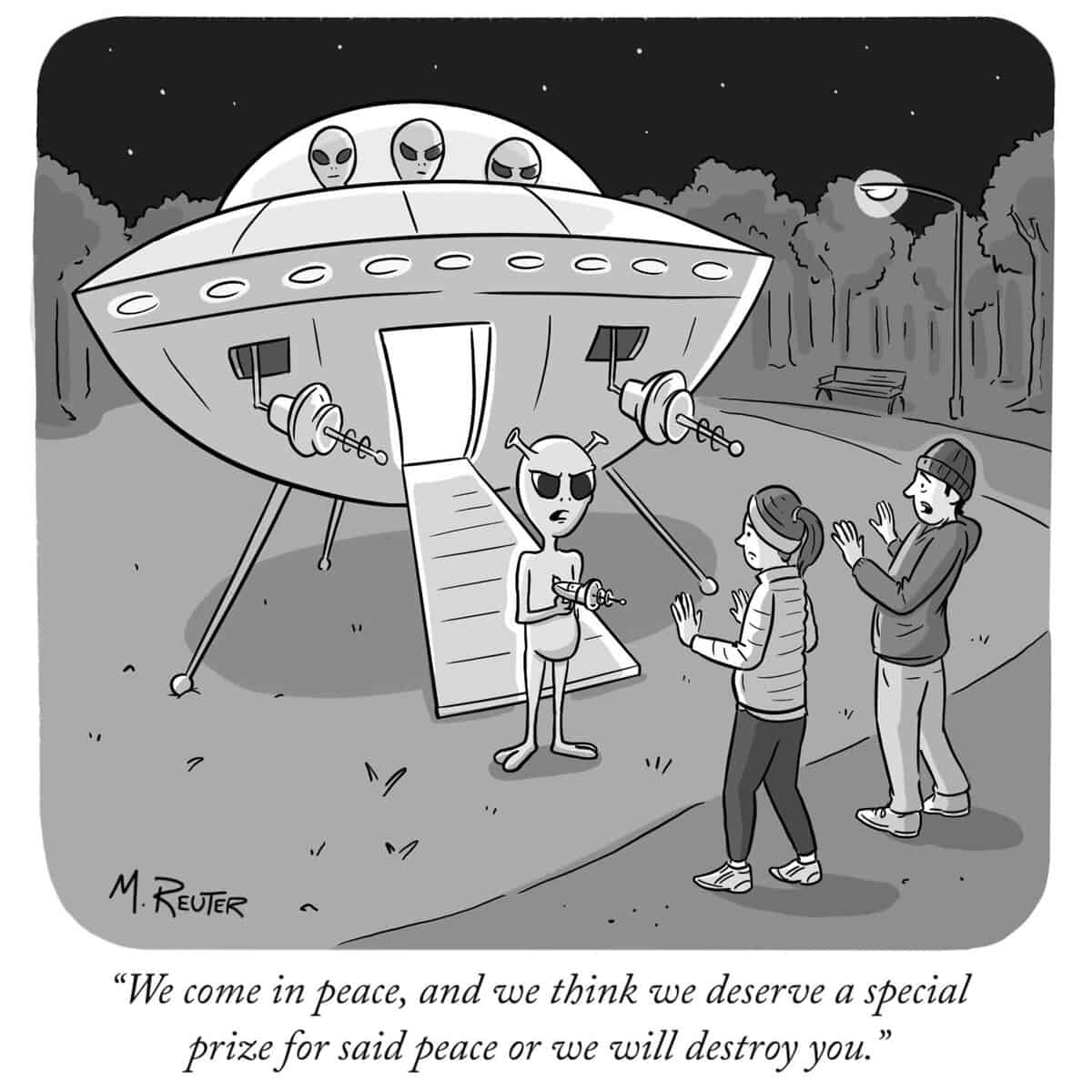 That’s why I love the work of Matt Reuter, whose clever single-panel cartoons have that perfect New Yorker-style balance of wit and insight.