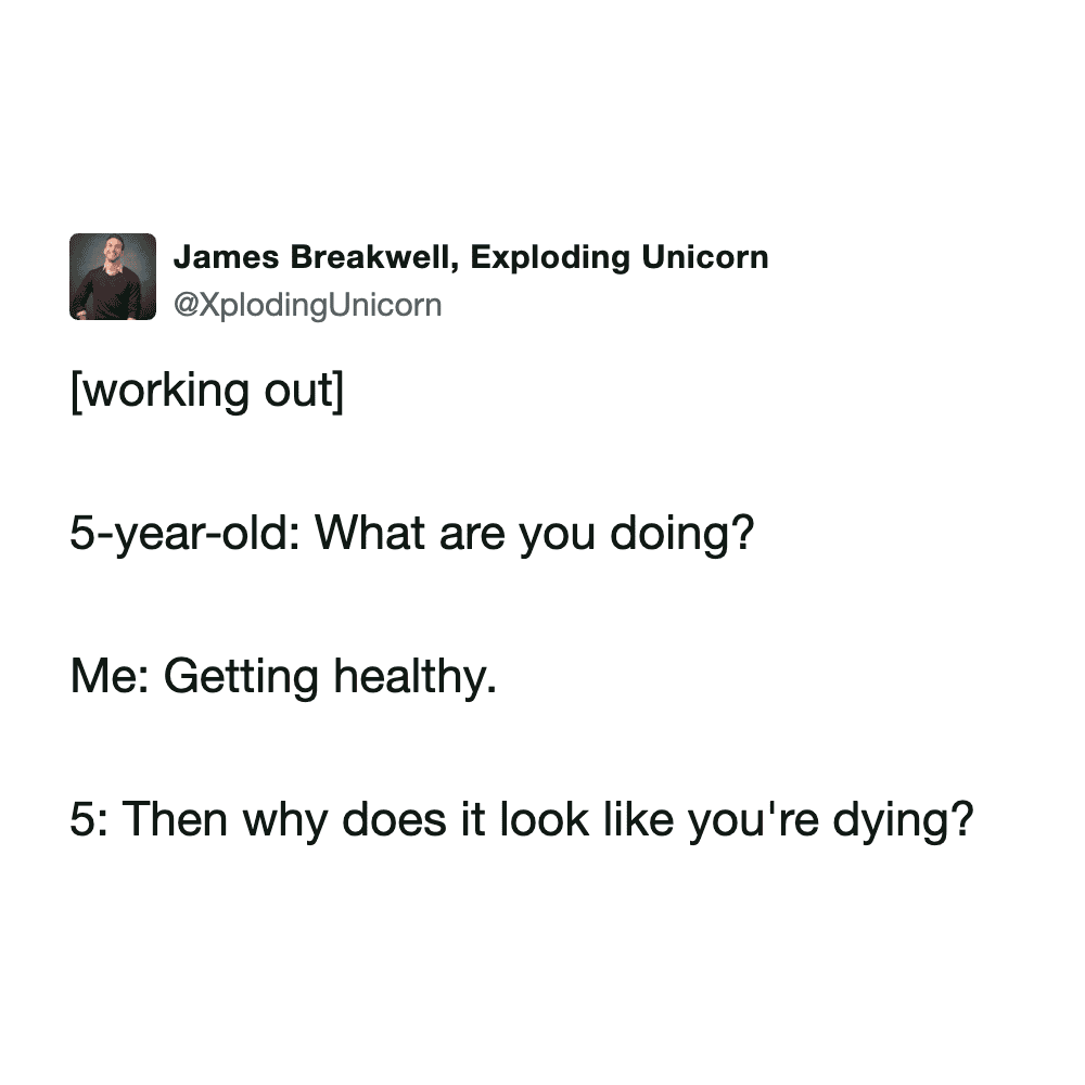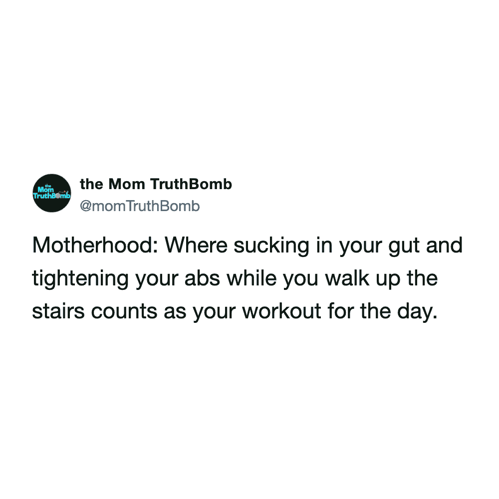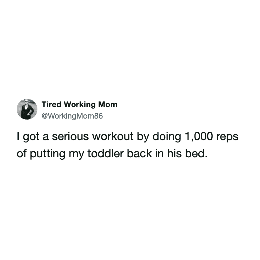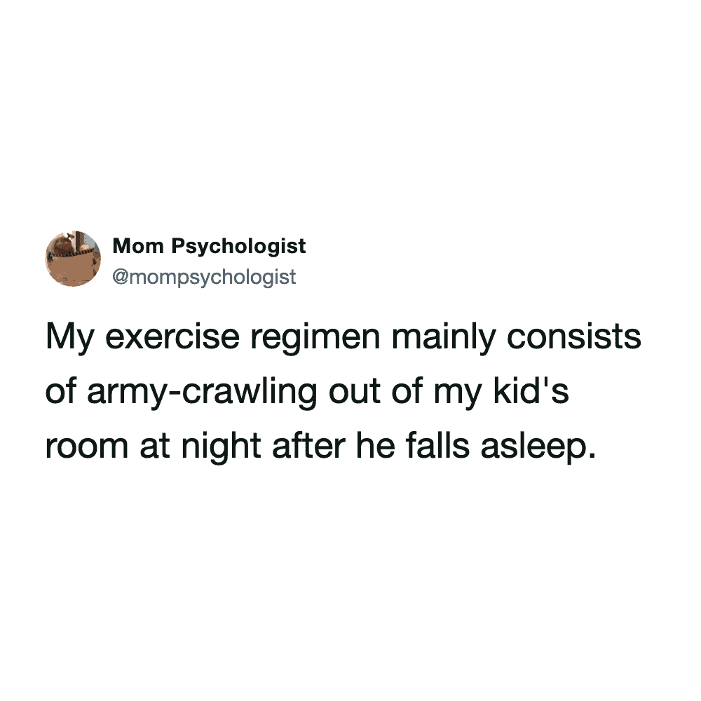 These funny parenting tweets are about how fitness standards change after having kids, and they’re hilarious. The goals shift from “run a 5K” to “survive carrying a toddler up the stairs without throwing out your back.”