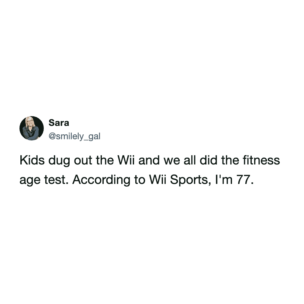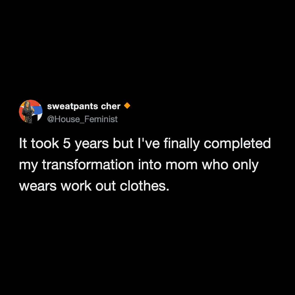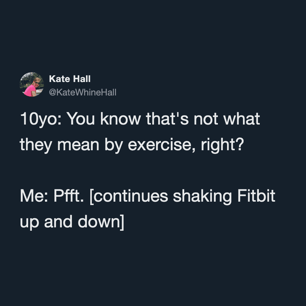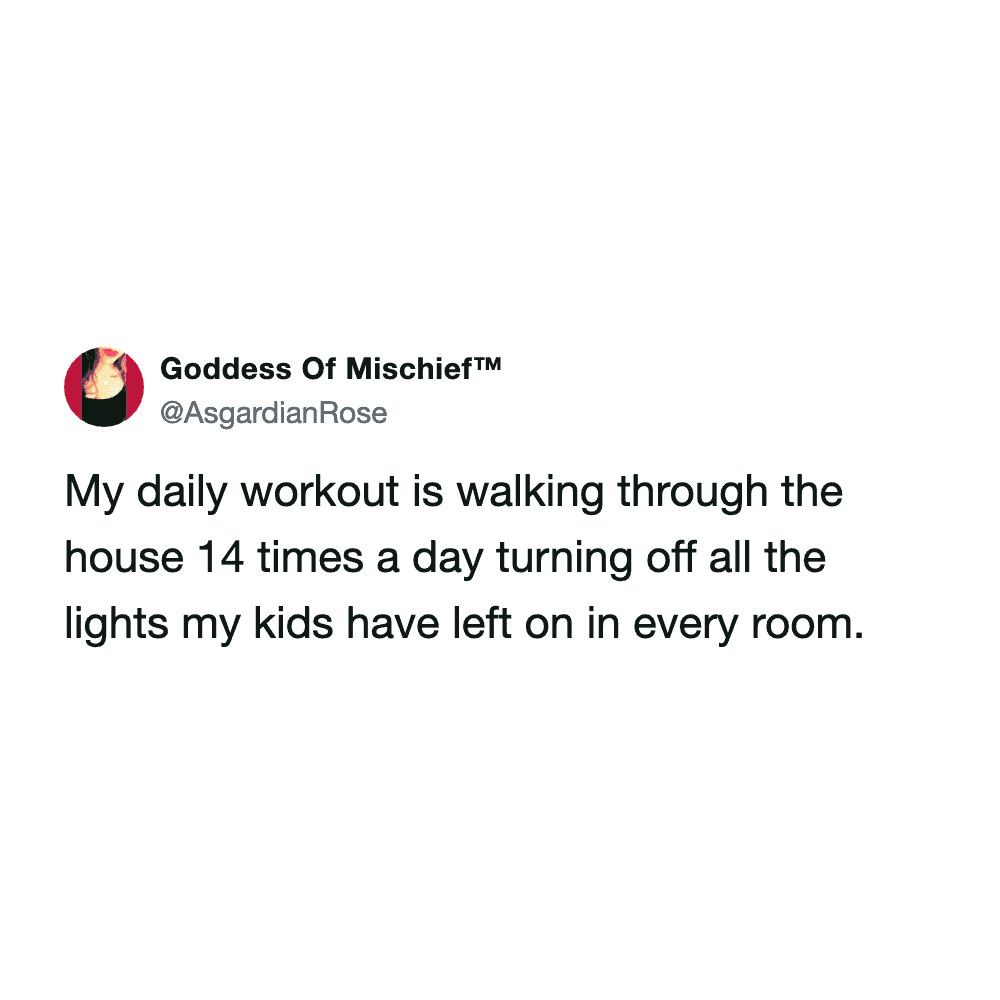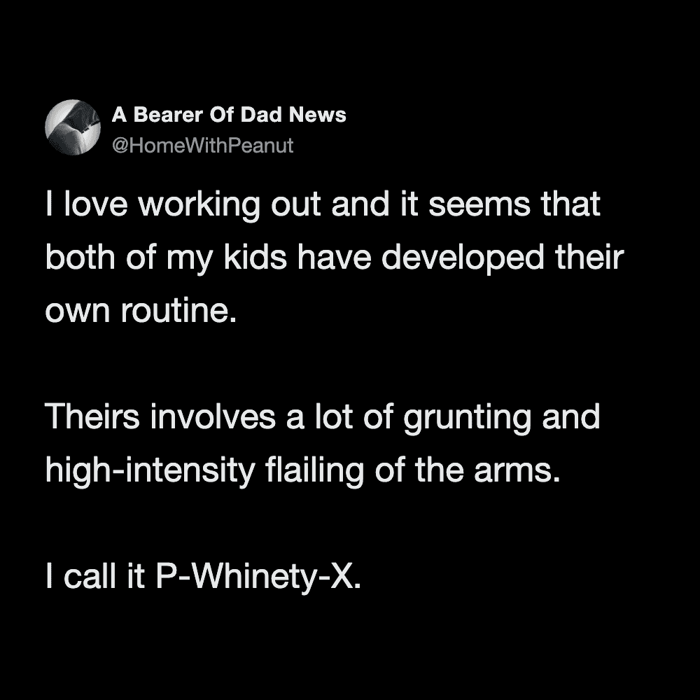 These funny parenting tweets are about how fitness standards change after having kids, and they’re hilarious. The goals shift from “run a 5K” to “survive carrying a toddler up the stairs without throwing out your back.”