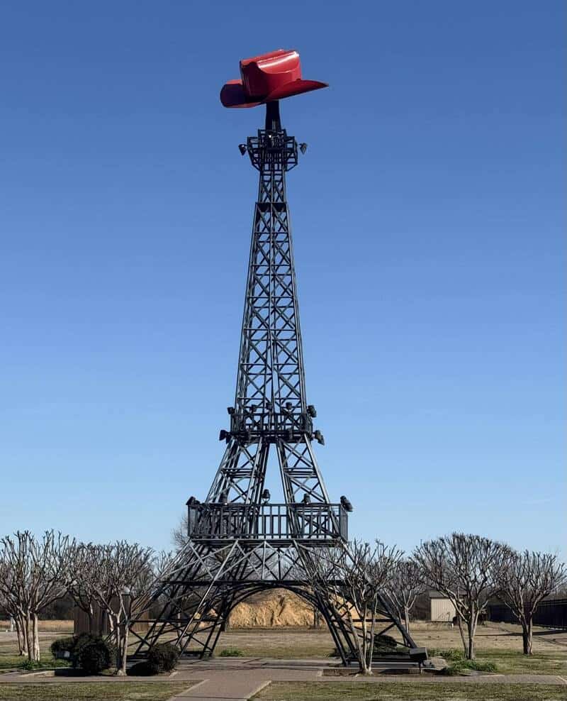 39. “Paris, Tx Eiffel Tower with cowboy hat of course.”