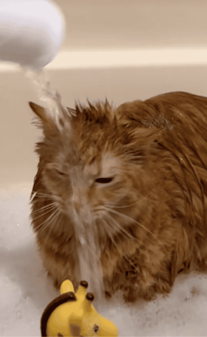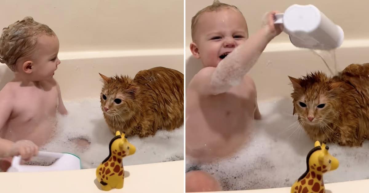 This absolute legend of a feline is currently making the rounds for calmly taking a bath with his tiny human — and when I say calmly, I mean saint-level restraint.