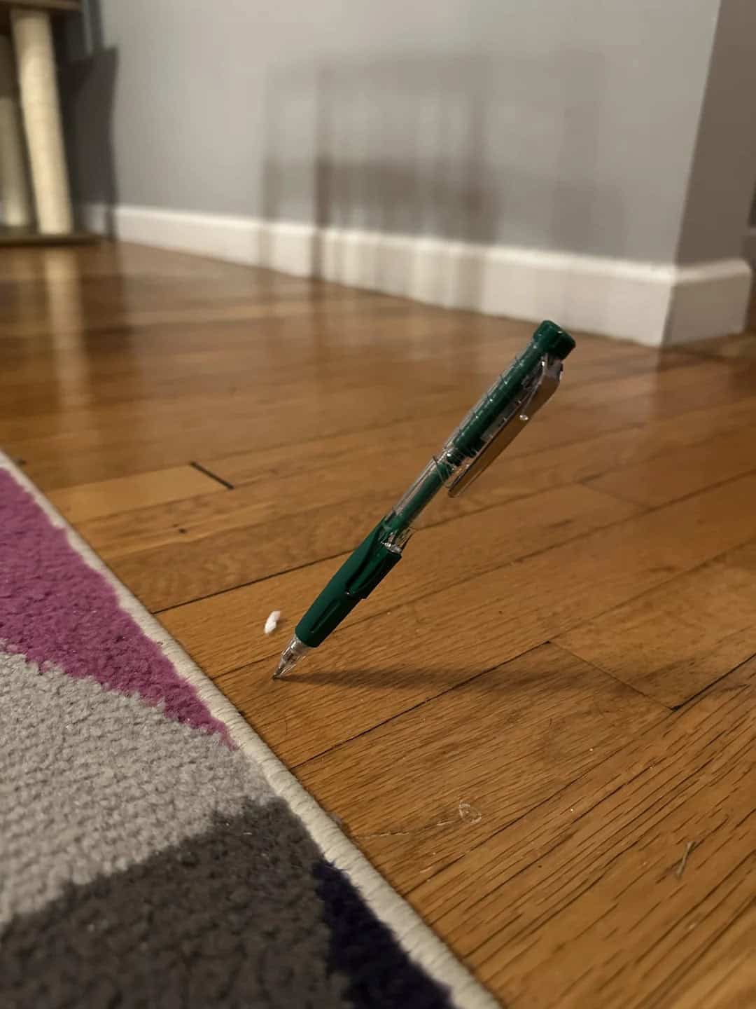 23. “Dropped a mechanical pencil and it stuck in the floor at an odd angle”