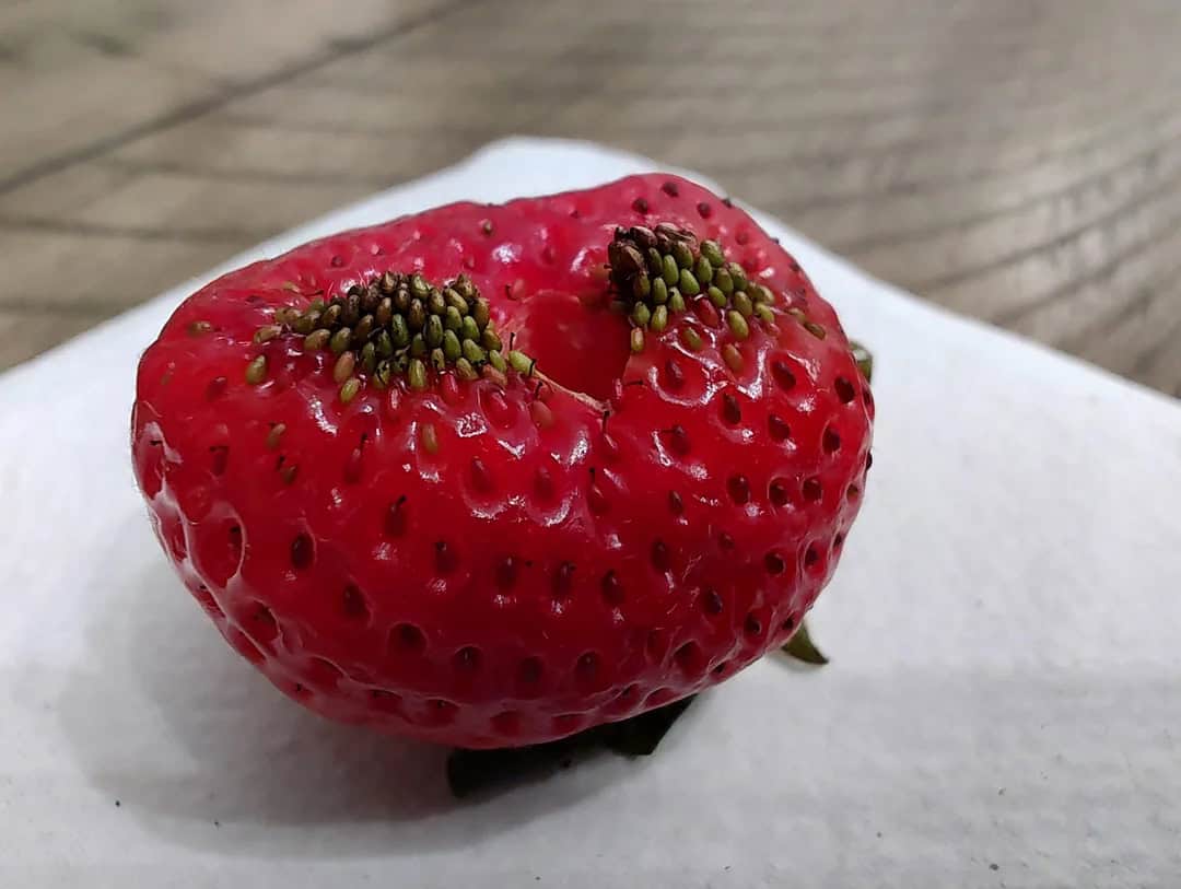 5. “This strawberry has a super dense concentration of seeds at the bottom.”